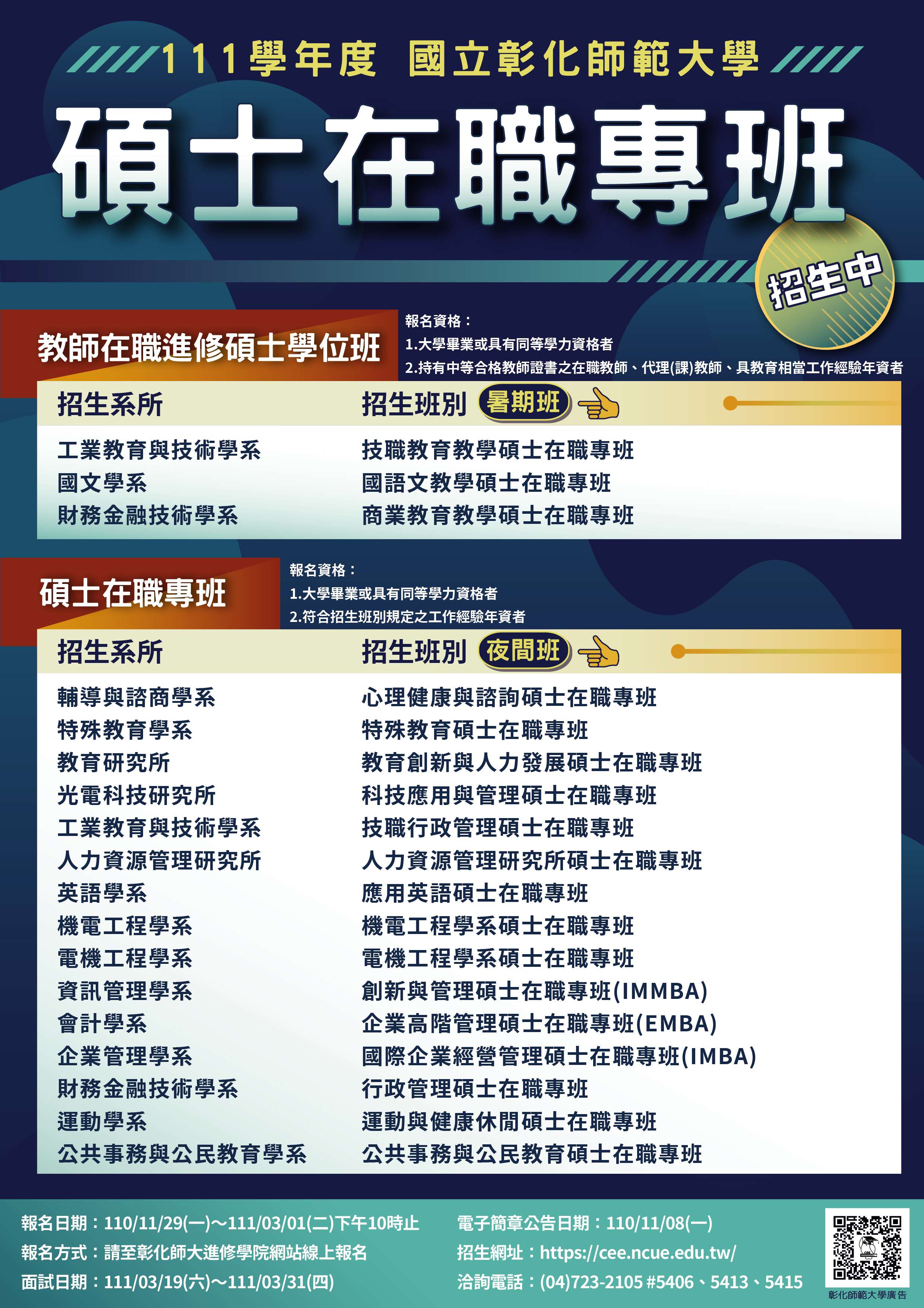 牆,公告內容:「111學年度國立彰化師範大學碩士在職專
