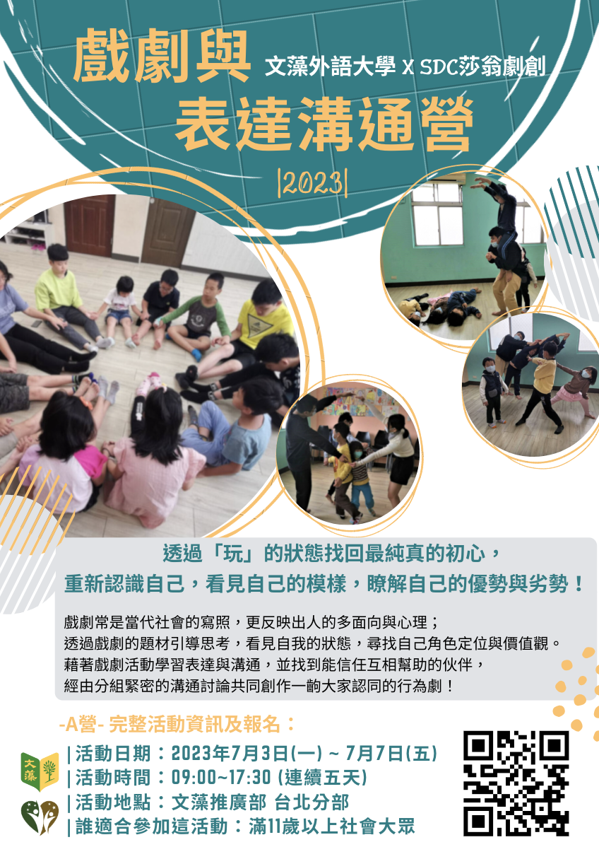 文藻學校財團法人文藻外語大學辦理戲劇與表達溝通營(如附件),請踴躍參加!