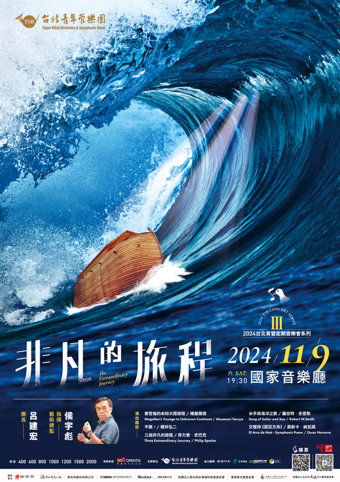 2024台北青管定期音樂會系列III,由侯宇彪教授指揮台北青年管樂團演出;以旅遊冒險為主軸,精挑細選相關經典作品與嶄新大作,用音樂帶領您進行一場非凡的旅程。