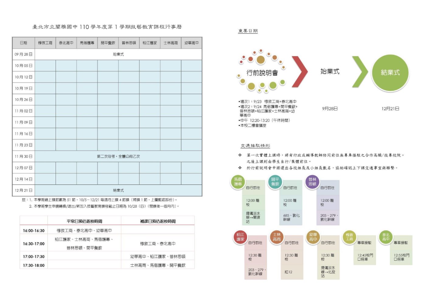 ※ 本學期上課型式等細節將可能因疫情變化而有調整,依輔導室資料組公告為準。