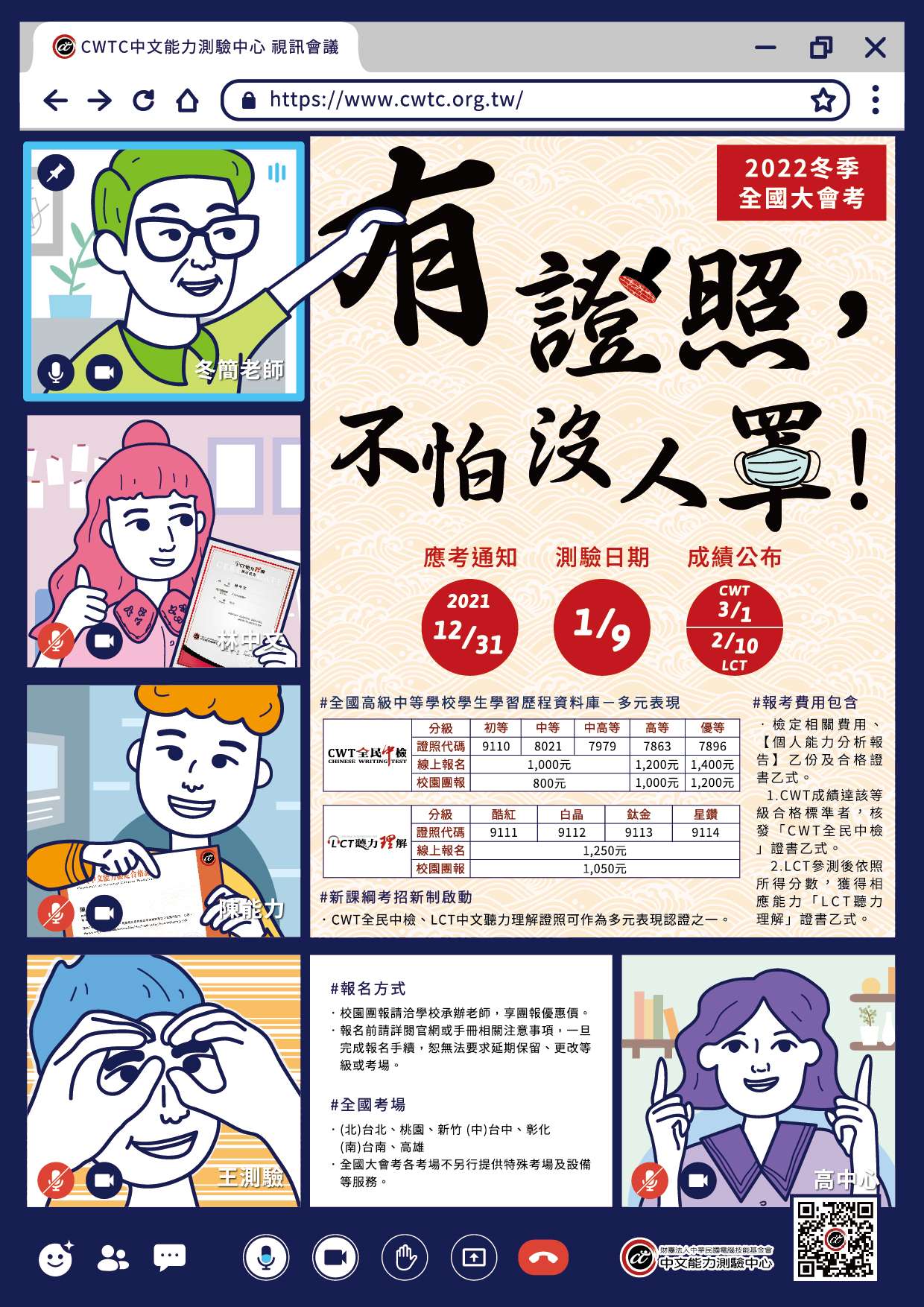甲、CWT全民中檢證照代號: 初等9110、中等8021、中高