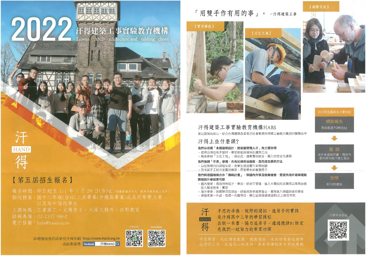 我們是致力於建築與能源教育的非營利組織-汗得學社,今年即將招收第5屆學生。