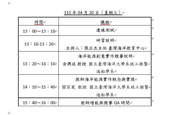 (一)辦理時間:111年04月20日(星期三)13:00至16:00。