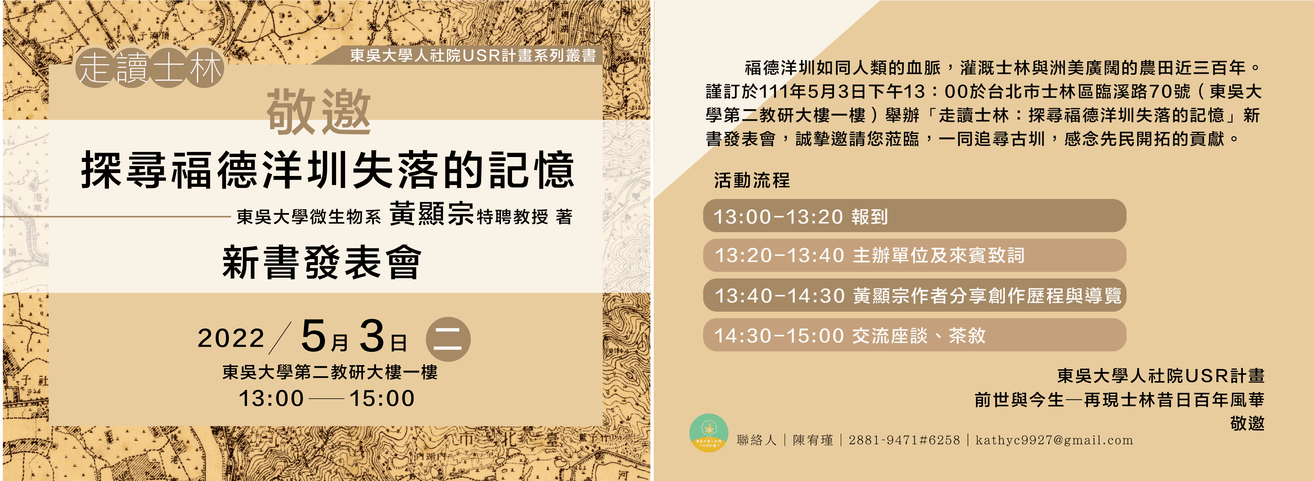 一、東吳大學人社院USR計畫「前世與今生──再現士林昔日百