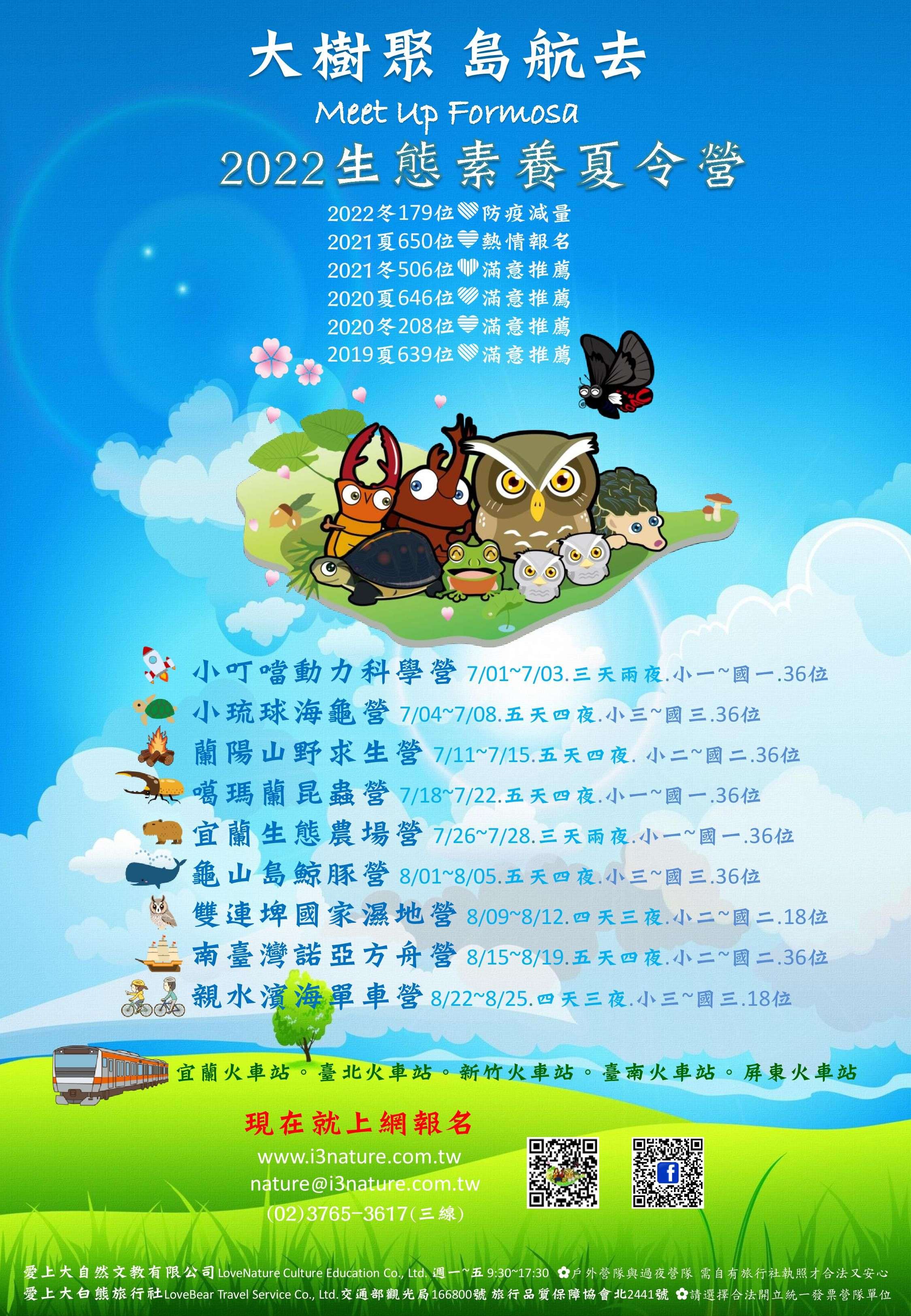 一、本活動共九種營隊課程,5月1日開放網路報名,詳見網 站:www.i3nature.com.tw。