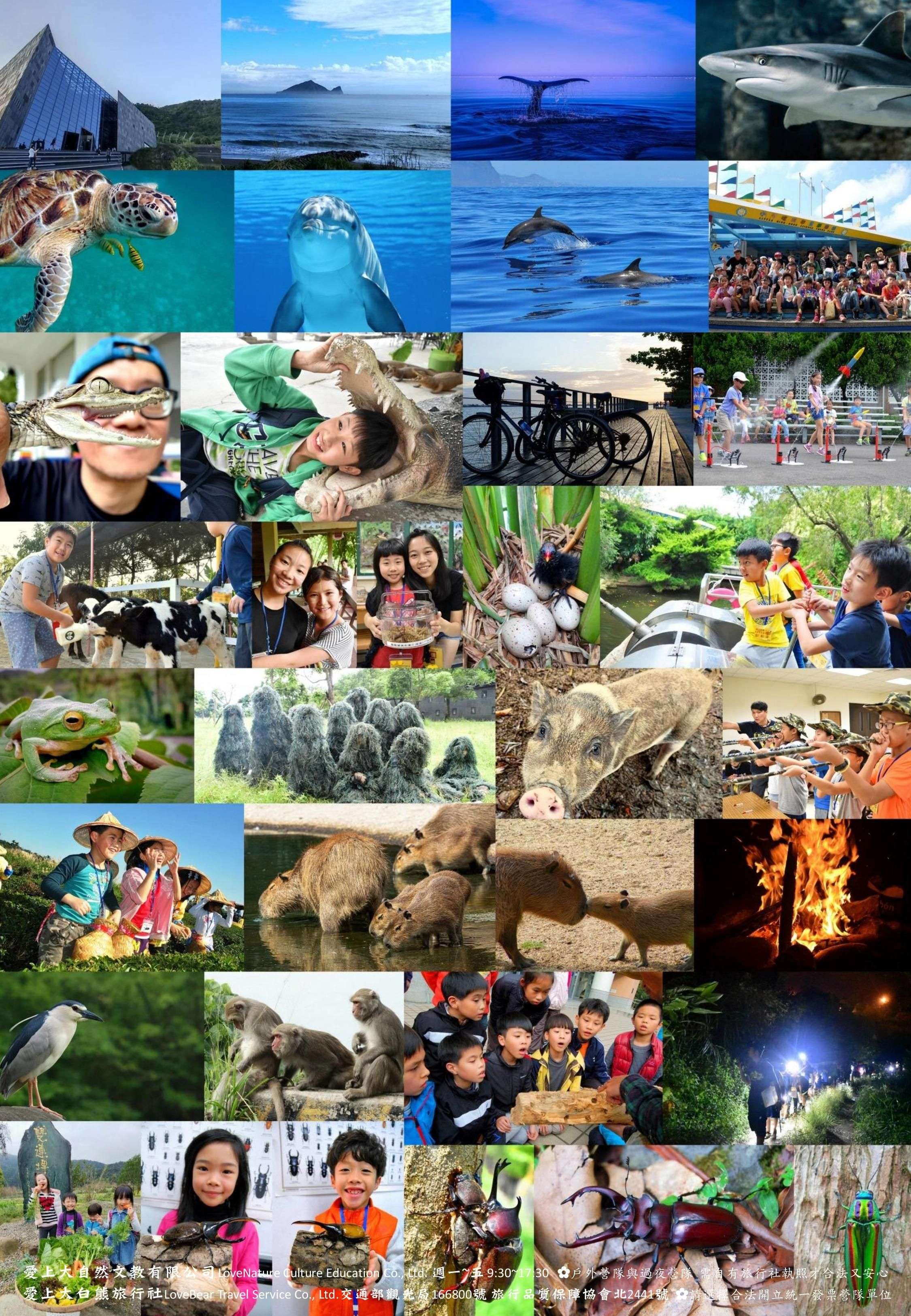 四、課程內容包括環境教育、海洋污染、動物福利、生態旅 遊、臺灣原生種動植物、人道移除外來種、淨山淨灘減少購物、愛地球沒有人是局外人、物理化學生活科學等素養 教育。