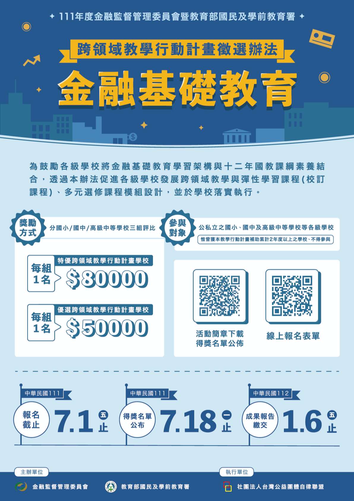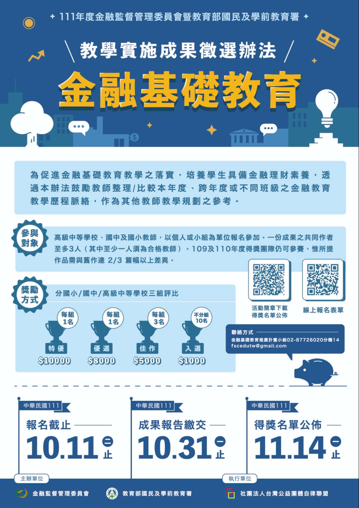 二、旨揭2項徵選辦法已公告於111年度金融基礎教育推廣合作