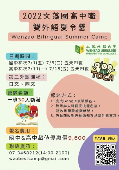 五、詳情可上本校推廣部網頁查詢:http://3L.WZU.EDU.TW, 或洽專線(07)3458212。