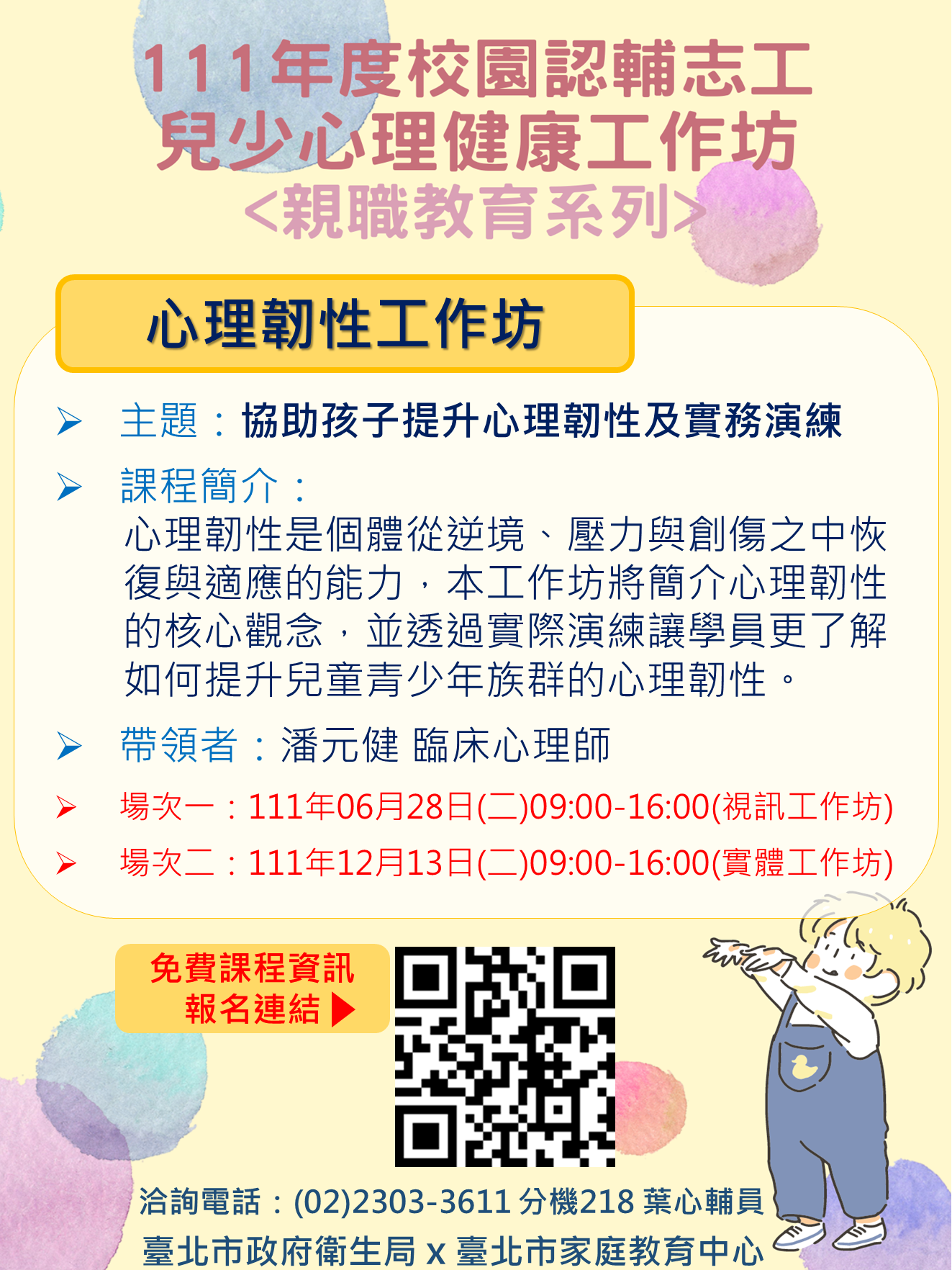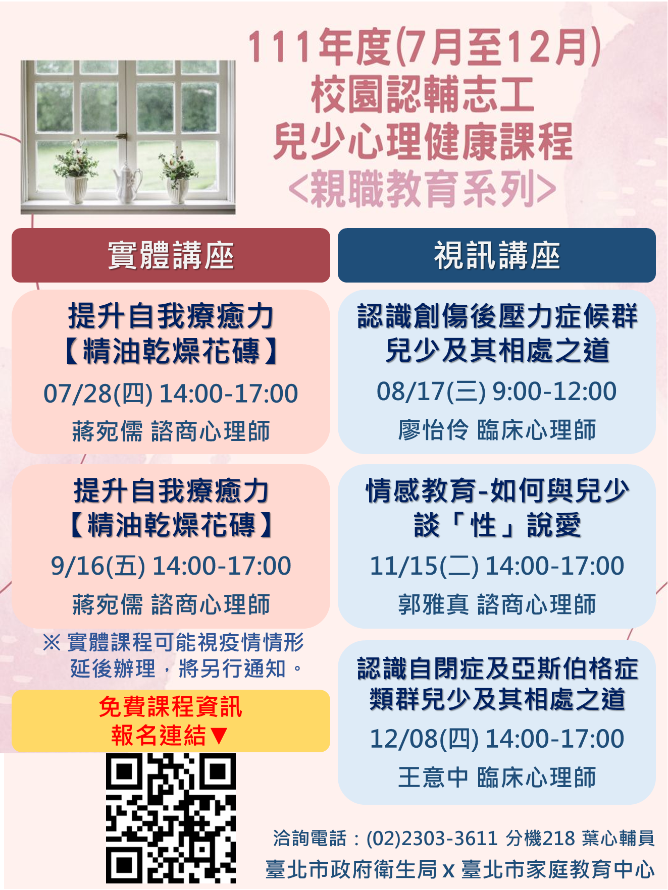 (四)報名網址:https://mental-health.gov.taipei/(臺北市社區心理中心官網-報名專區-講座/活動)。