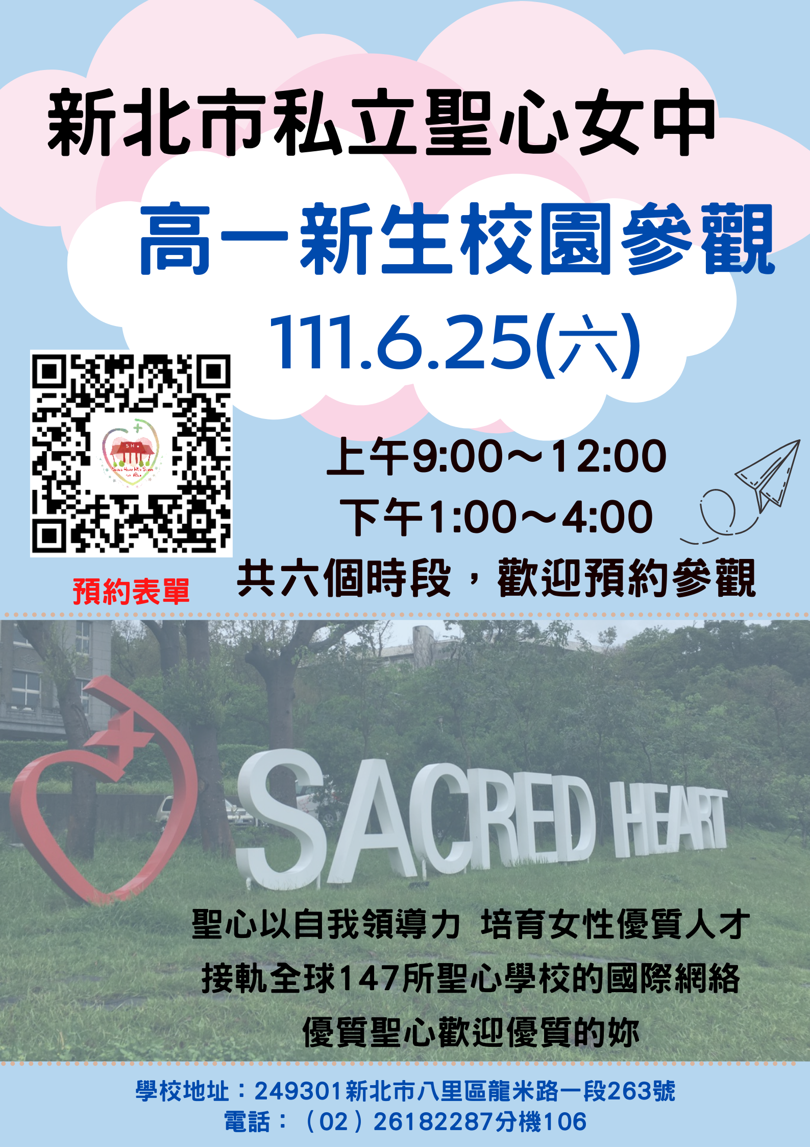一、為協助國中女學生及家長認識本校,特辦理「高一新生校園參觀」。