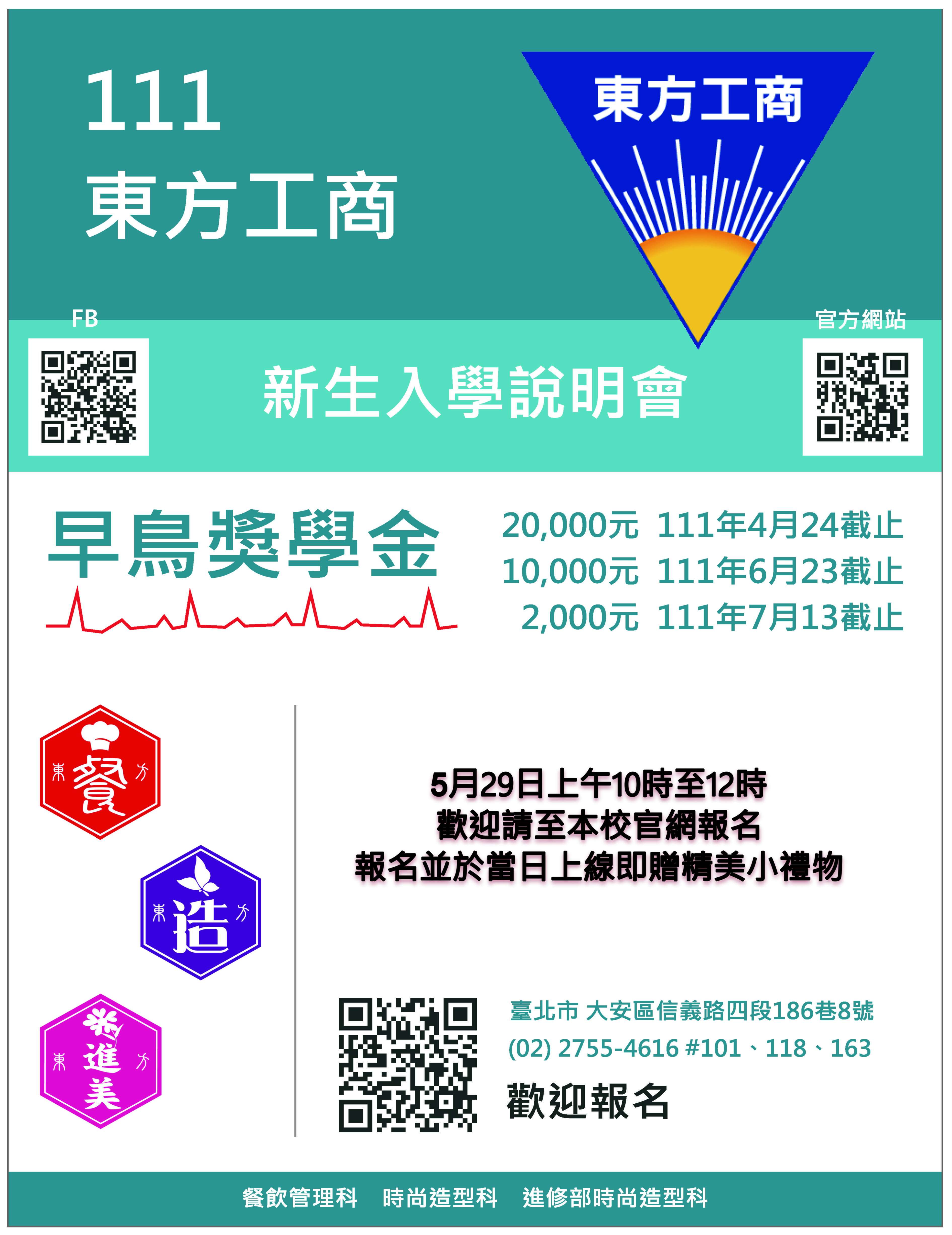 一、為鼓勵國中學生了解未來升學趨勢與技職類科的發展,本校訂於6月25日上午10時進行新生入學網路說明會,讓貴校學生能有更多高中職了解與認識以作個人適性發展及升學規劃。