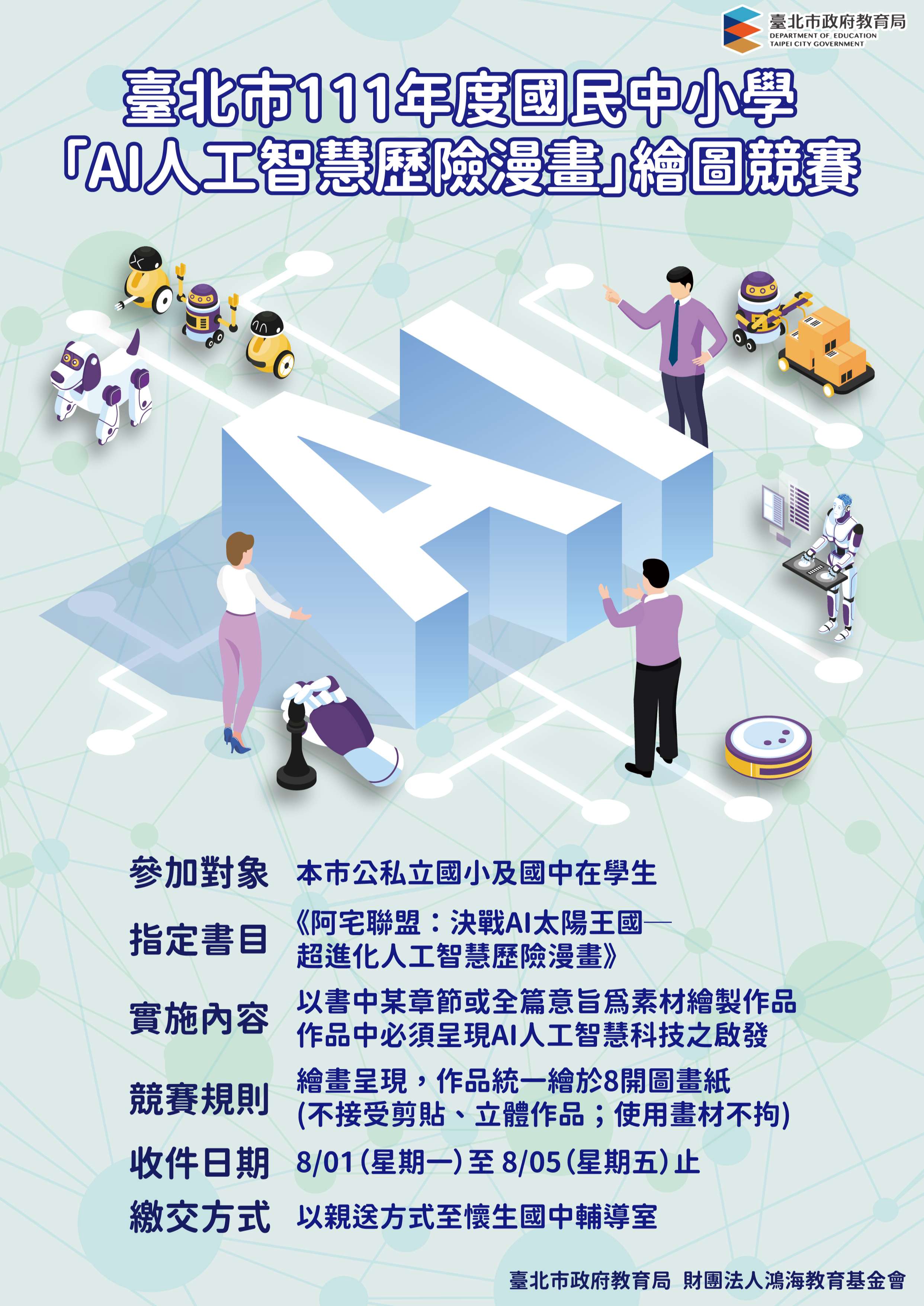 一、依據「臺北市111年度國民中小學『AI人工智慧歷險漫畫』 繪圖競賽實施計畫」辦理。
