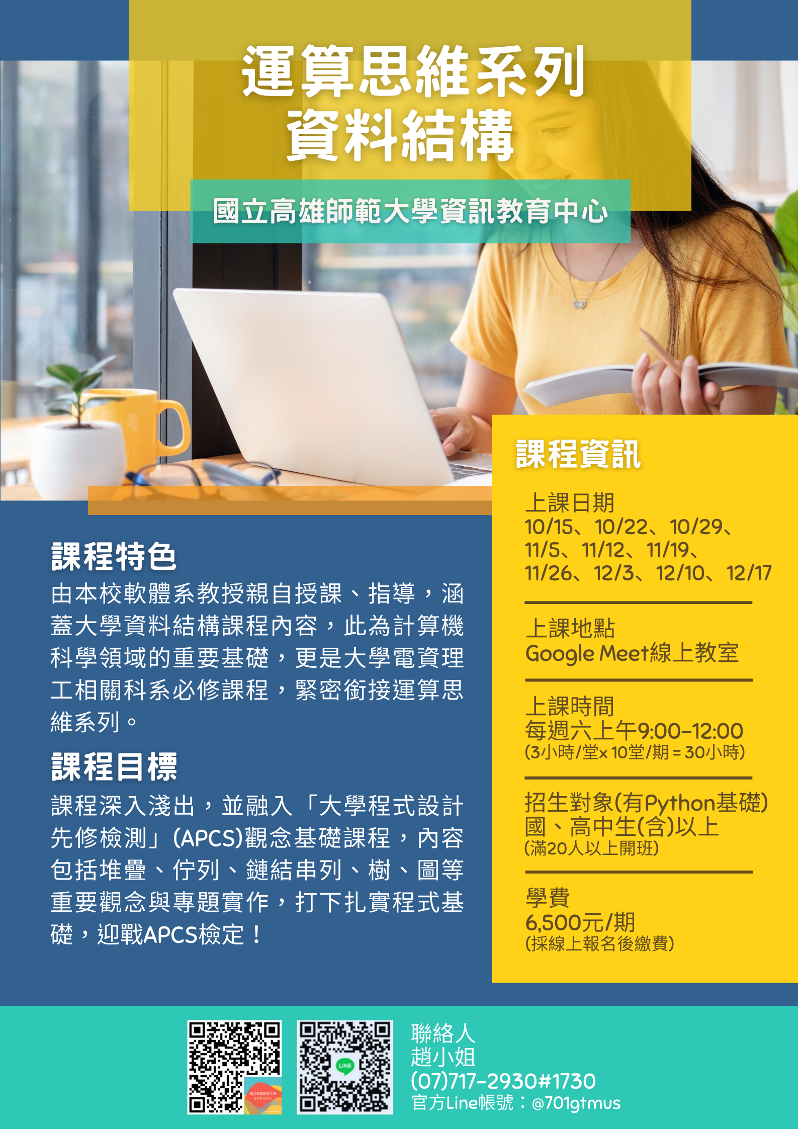 5、資料結構 (上課日期:2022/10/15-12/17)。