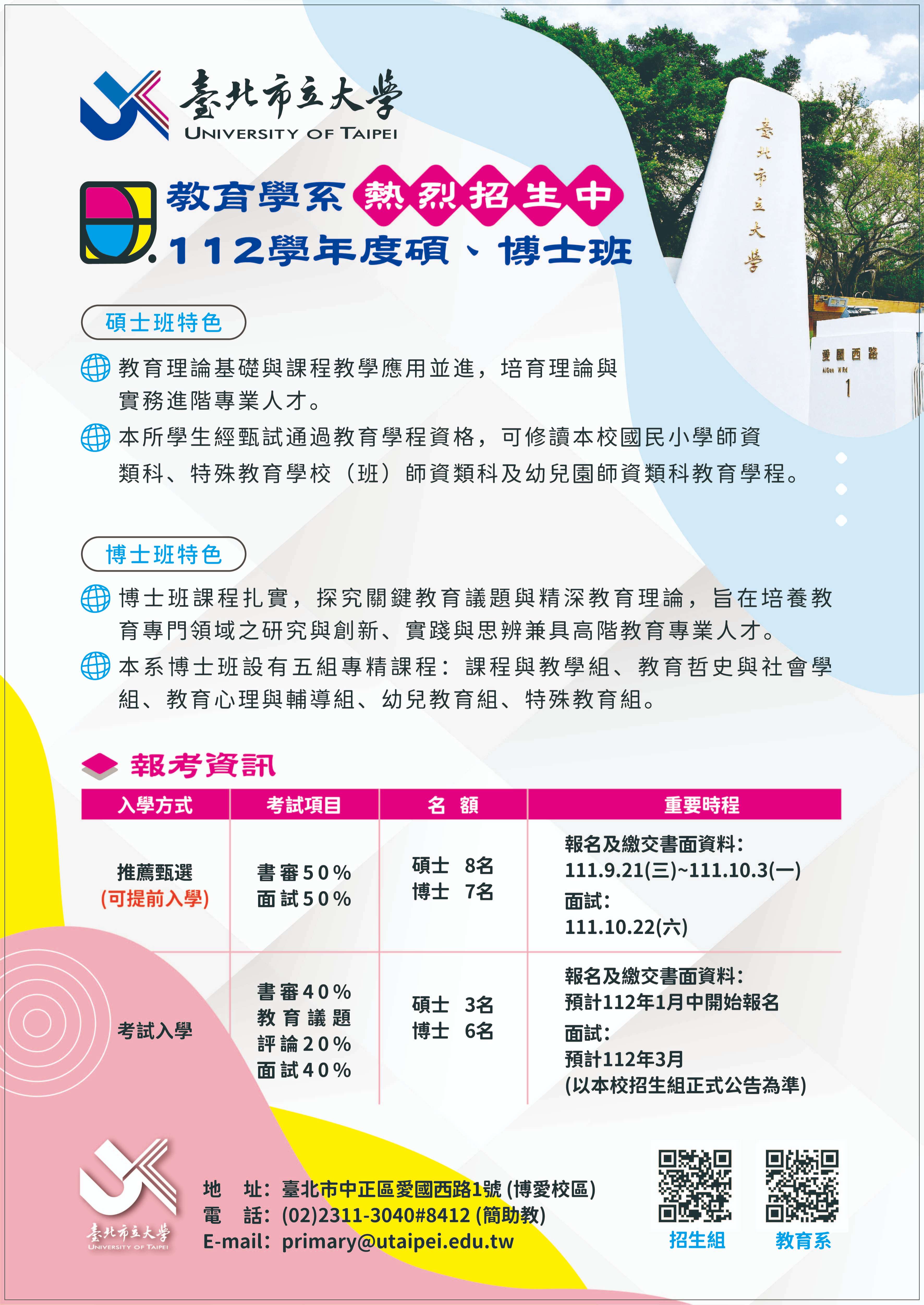 三、報名及繳交書面資料時間:111年9月21日(星期三)至111