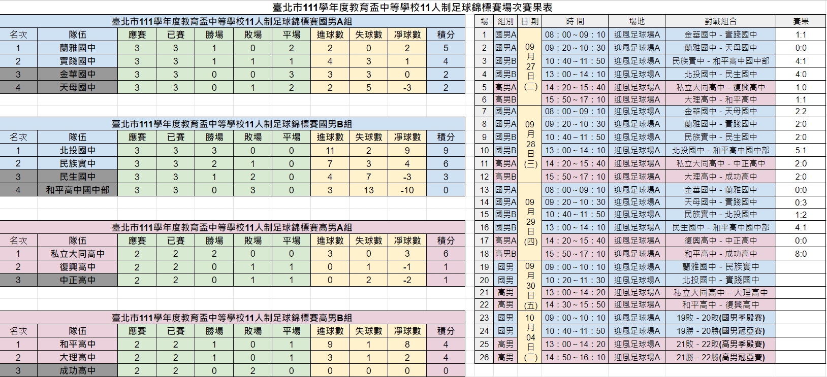 或點擊本次111學年度教育盃場次賽果表(隨時更新),若有誤植煩請告知!(28329377#230)