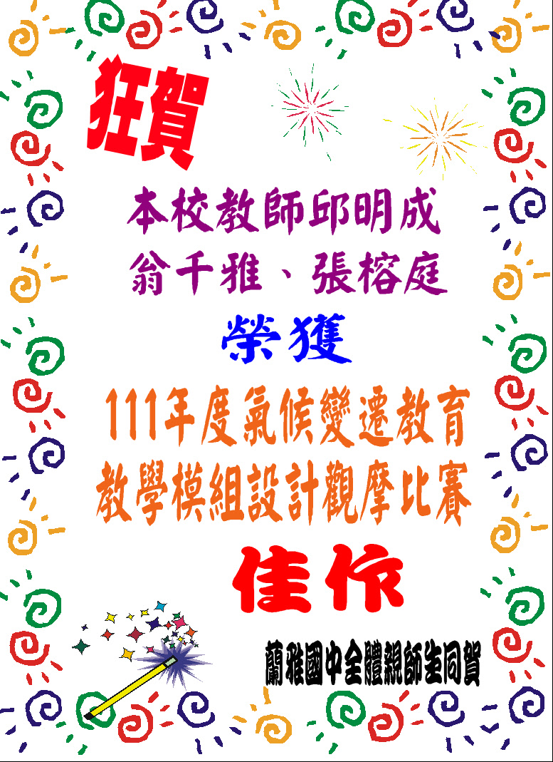 狂賀!本校教師邱明成、翁千雅、張榕庭參加111年度氣候變遷教育教學模組設計觀摩比賽,榮獲佳作。