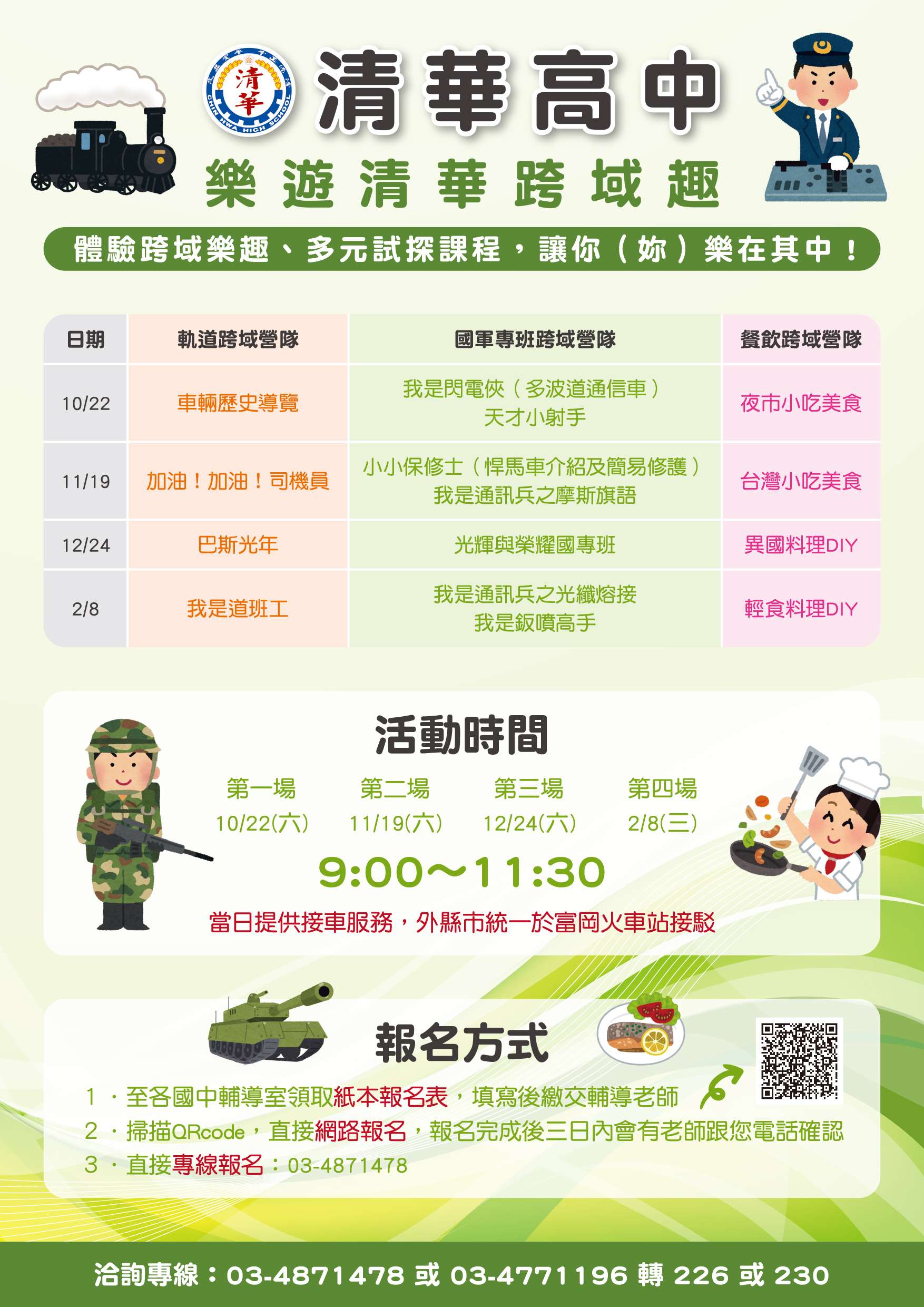 一、本校辦理「樂遊清華跨域趣」多元試探課程時間: