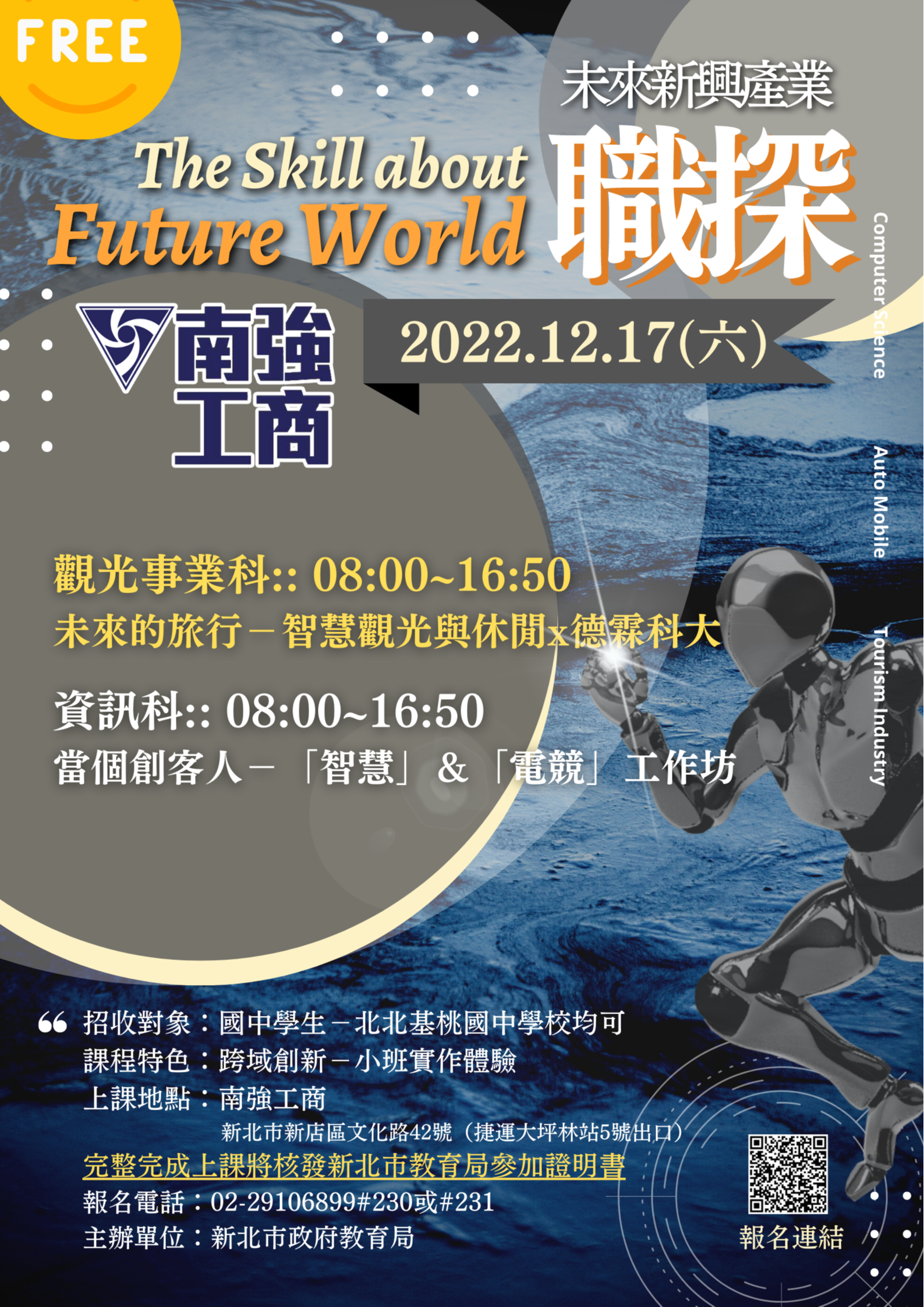(一)主題:當個創客人─「智慧」&「電競」工作坊。 地點:全程於南強工商。