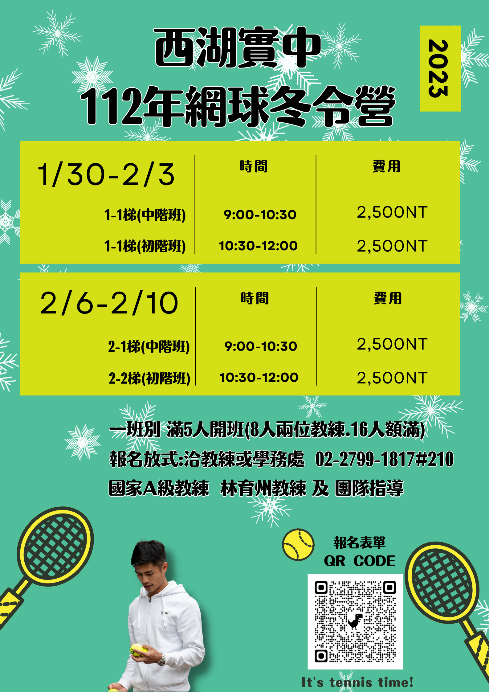 臺北市西湖實驗國民中學於112年度寒假辦理「冬令營」活動,請踴躍參加!
