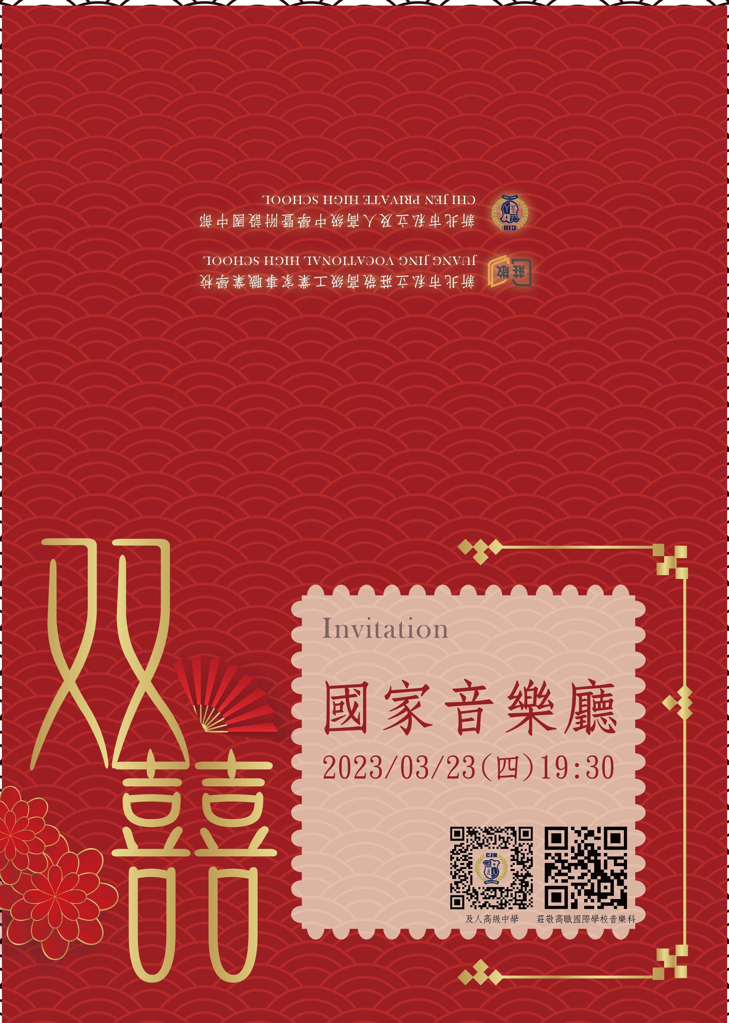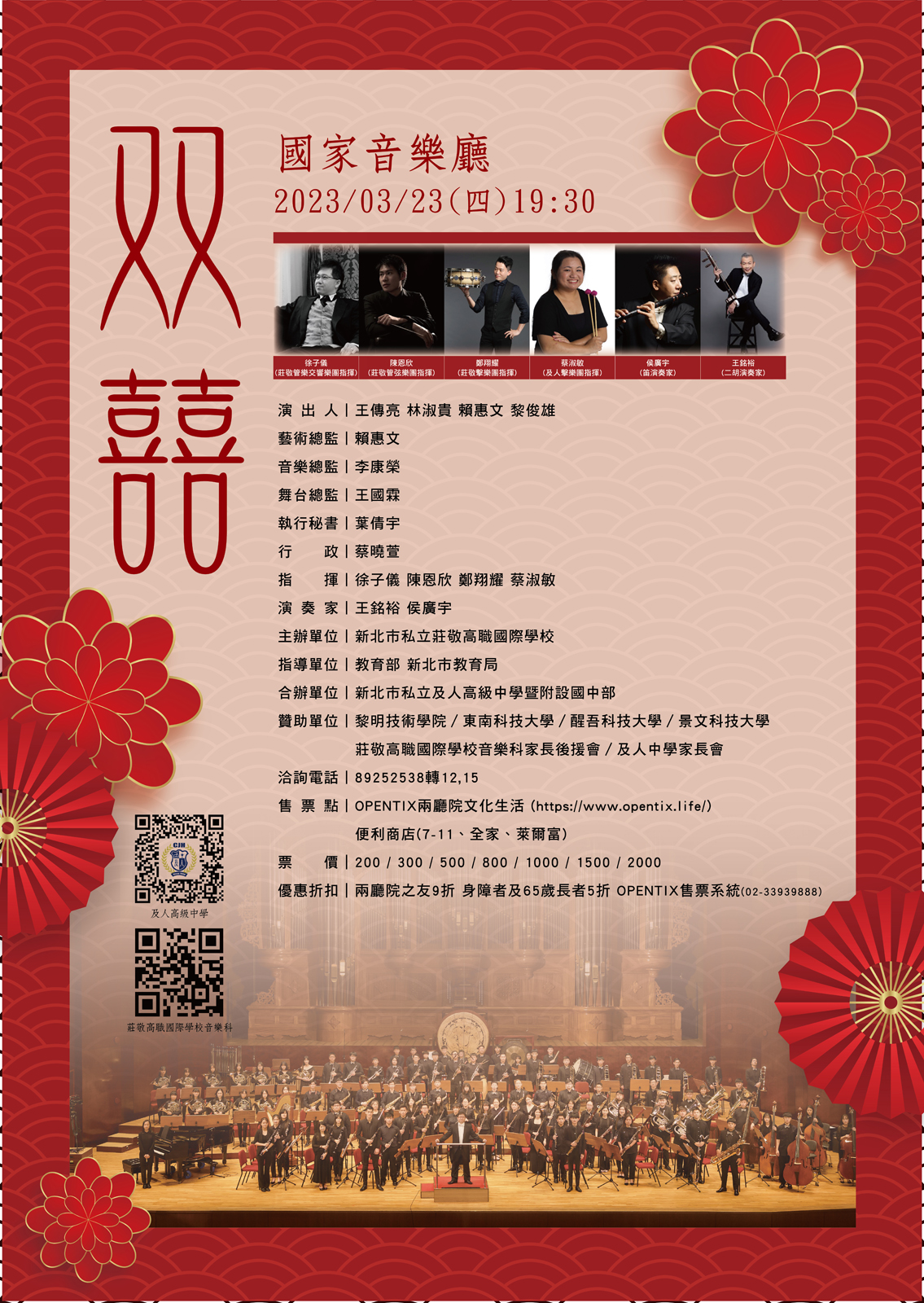 新北市私立及人高級中學於112年3月23日於國家音樂廳舉辦「双囍」歡迎各校索取公關票,詳見附件!