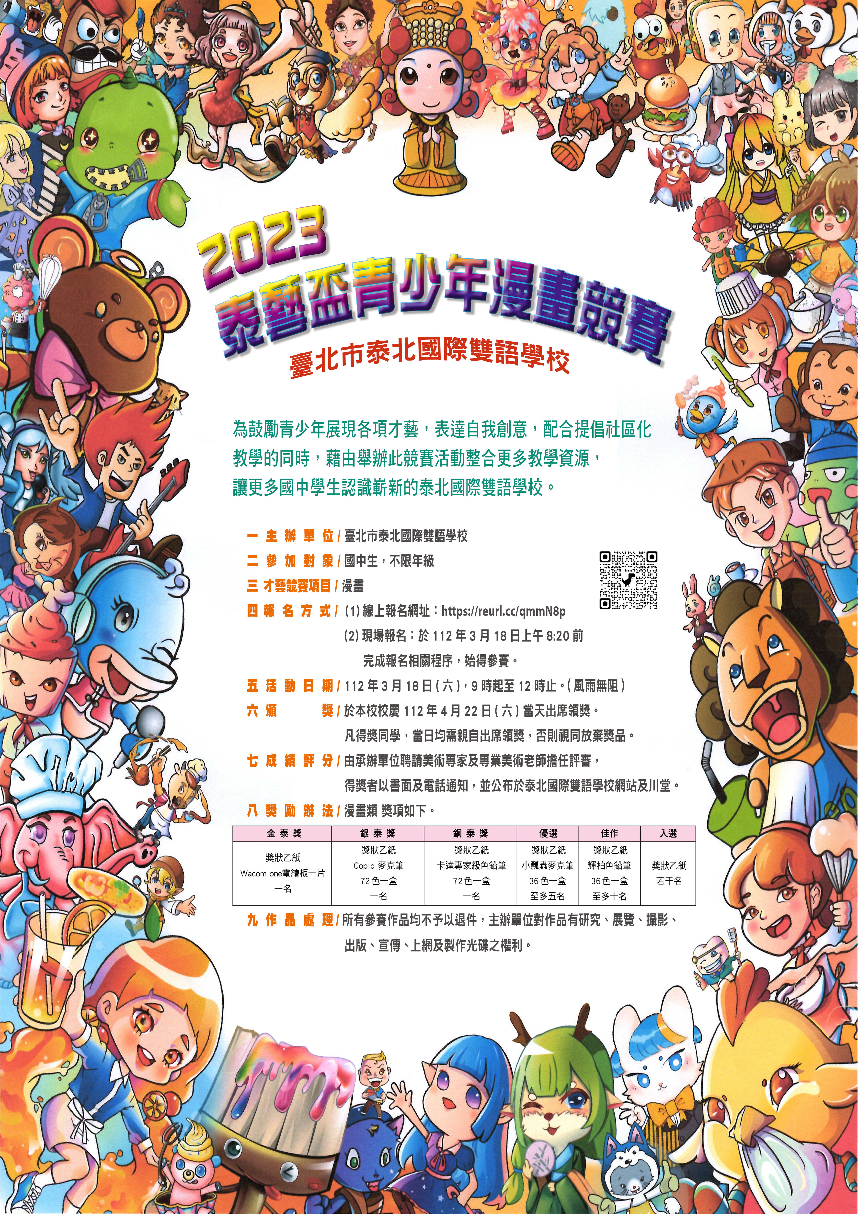 私立泰北高級中學辦理2023年度「泰藝盃」青少年漫畫比賽,敬邀貴校同學報名參加!
