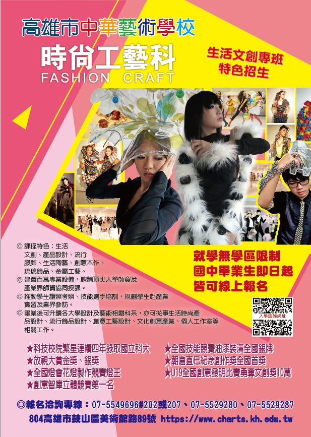 一、高雄市私立中華高級藝術職業學校時尚工藝科112學年度熱烈招生中,