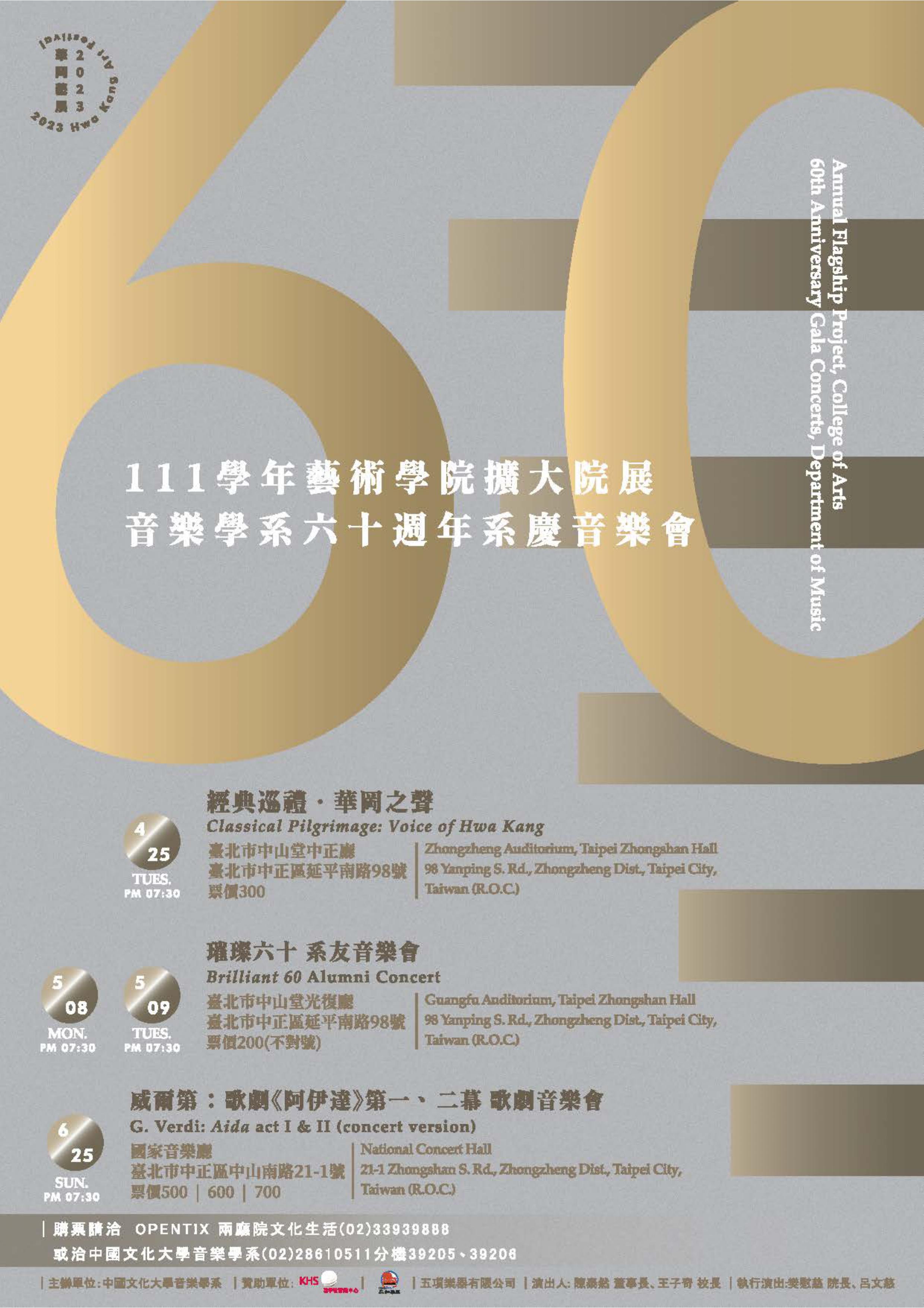 「111學年度中國文化大學藝術學院院展暨音樂學系六十週年系慶音樂會」,請校內師生蒞臨聆賞。詳見附件!