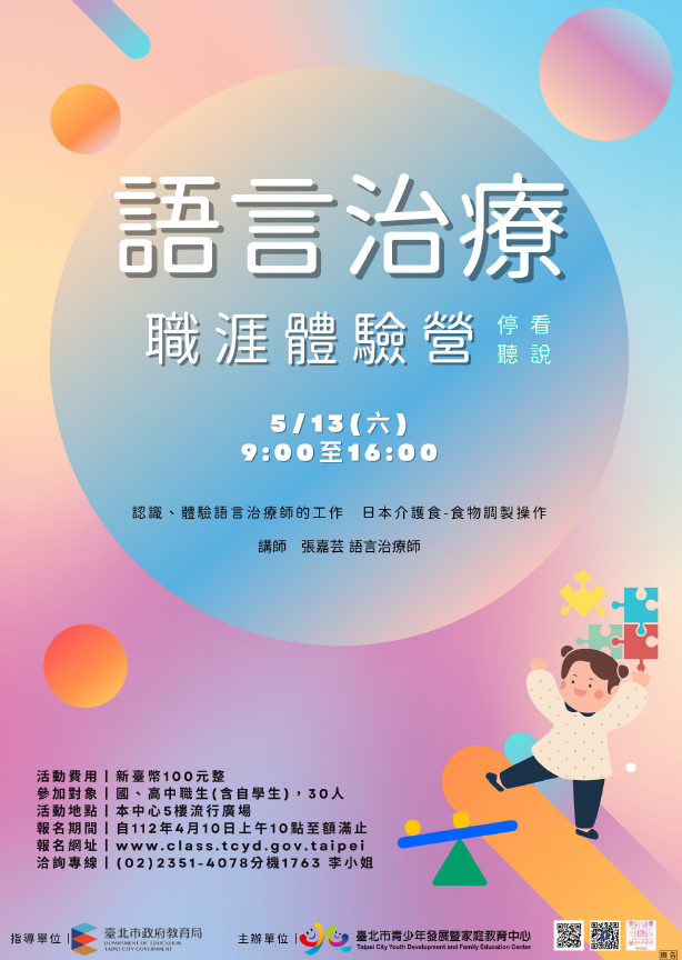 (三)活動對象與人數:國、高中職生(含自學生),30人。