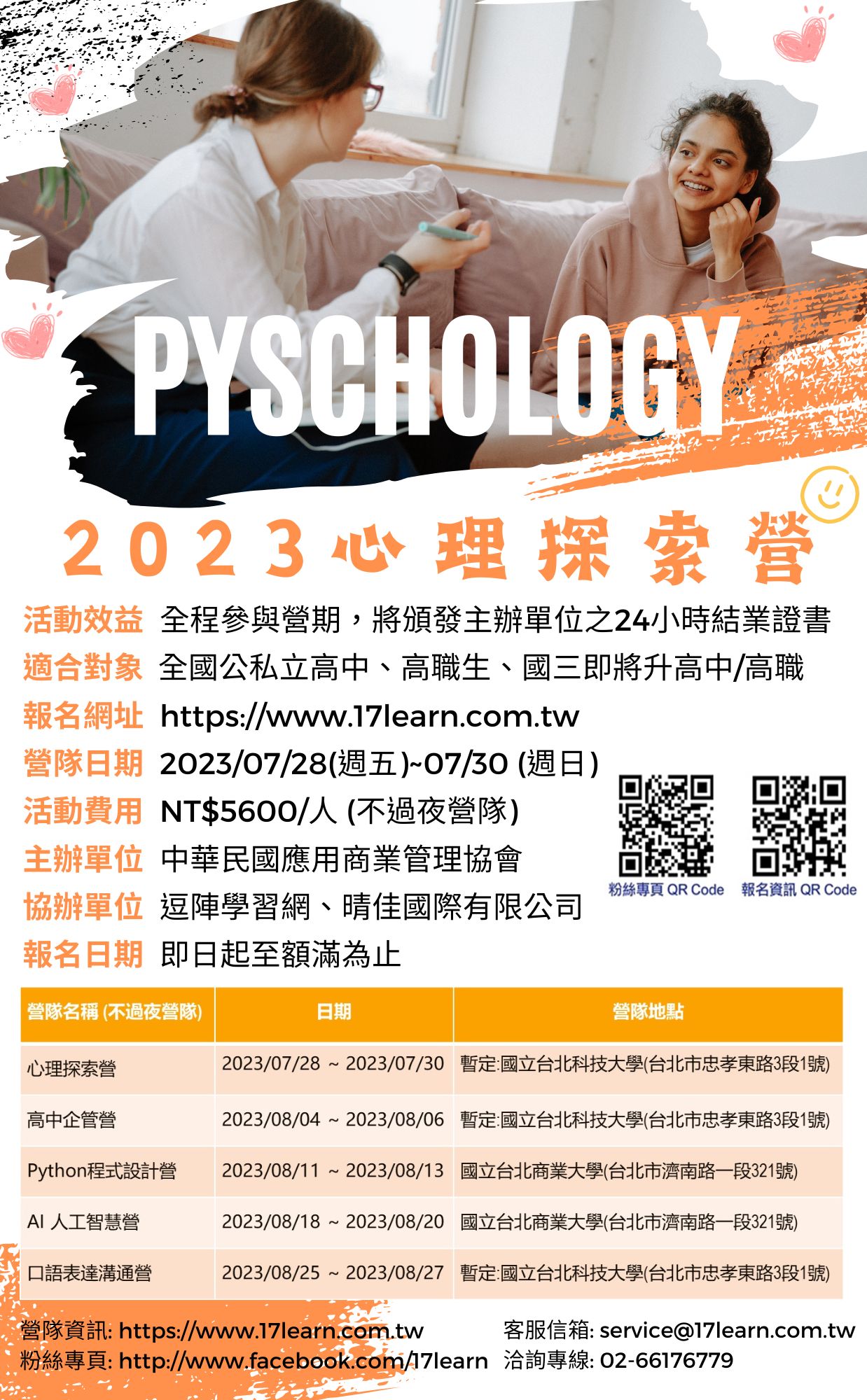 社團法人中華民國應用商業管理協會「2023年夏令營-心理探索營」,詳見附件!