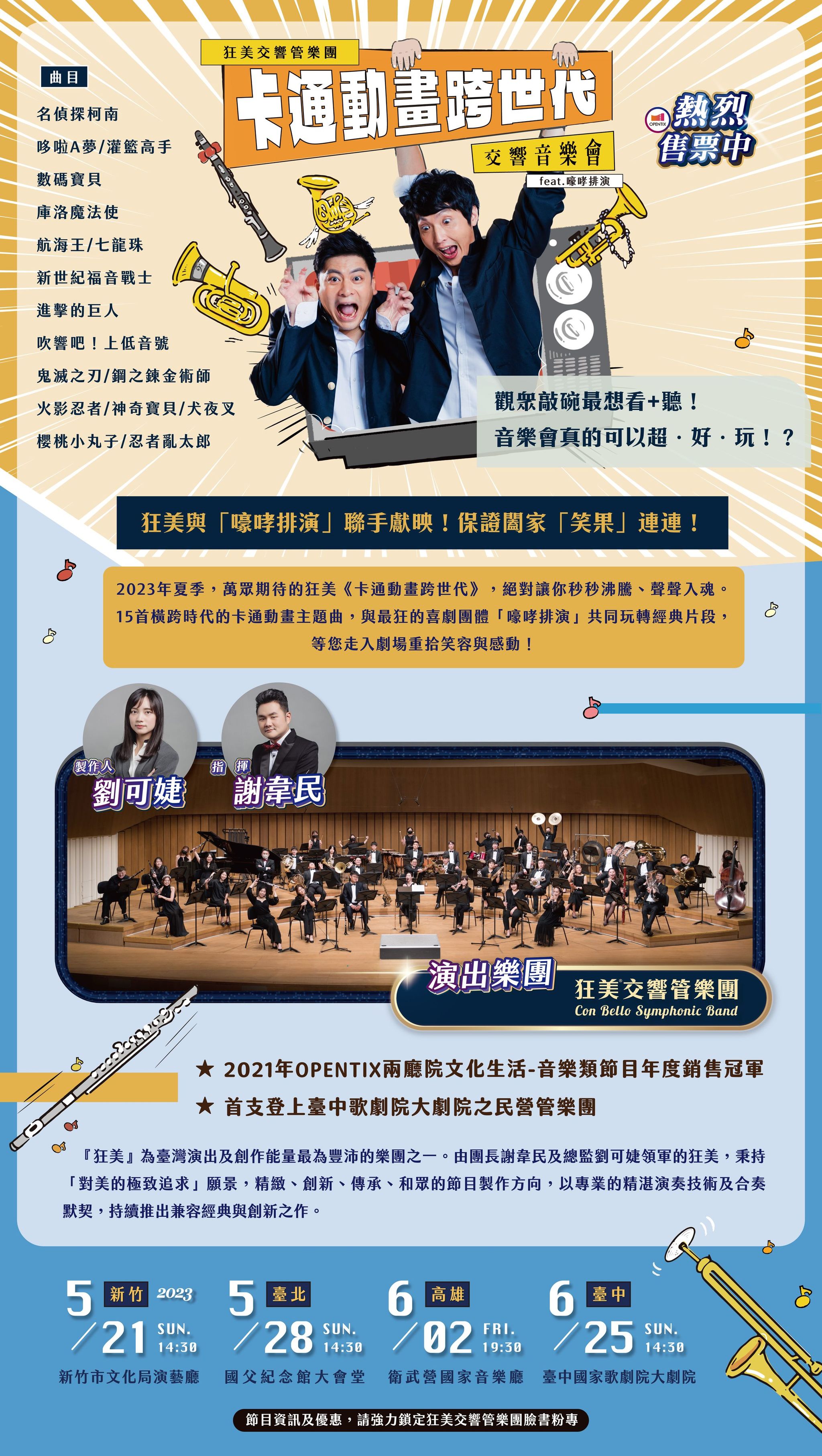 狂美交響管樂團為鼓勵民眾入場欣賞藝文展演活動、體驗音樂文化之美,提供購票教育推廣優惠方案,