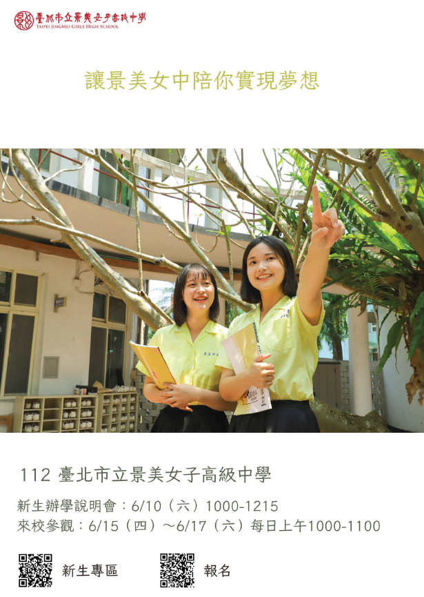 4、說明: (1)說明會以實體及同步直播形式進行,說明會影片亦將於會後公布於本校校網。 (2)直播連結將公告於景美女中校網「新生專區」 https://www.cmgsh.tp.edu.tw/nss/p /freshman。