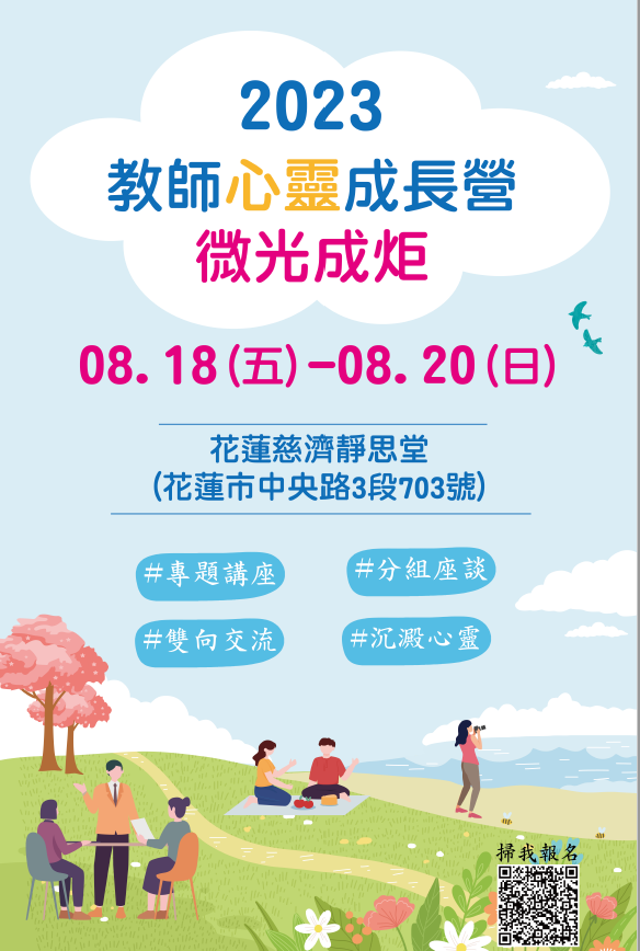 課程內容:專題講座創新應變、優質教育接軌國際、人道關懷生命教育、靜定身心自我觀照等,協助教師儲備能量, 迎接新學期。 聯絡人:陳詩評小姐,03-8266779轉258。