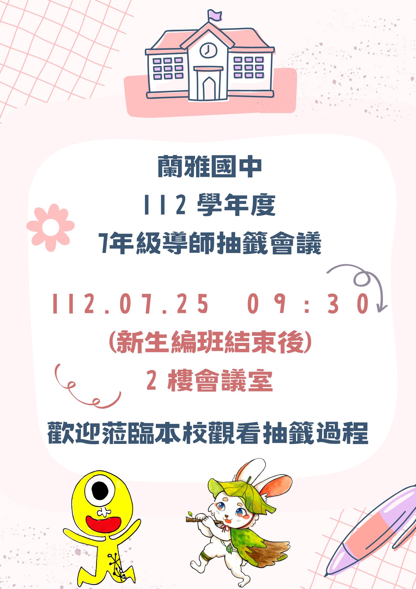 112學年度7年級導師抽籤會議時間暨流程,詳如附件