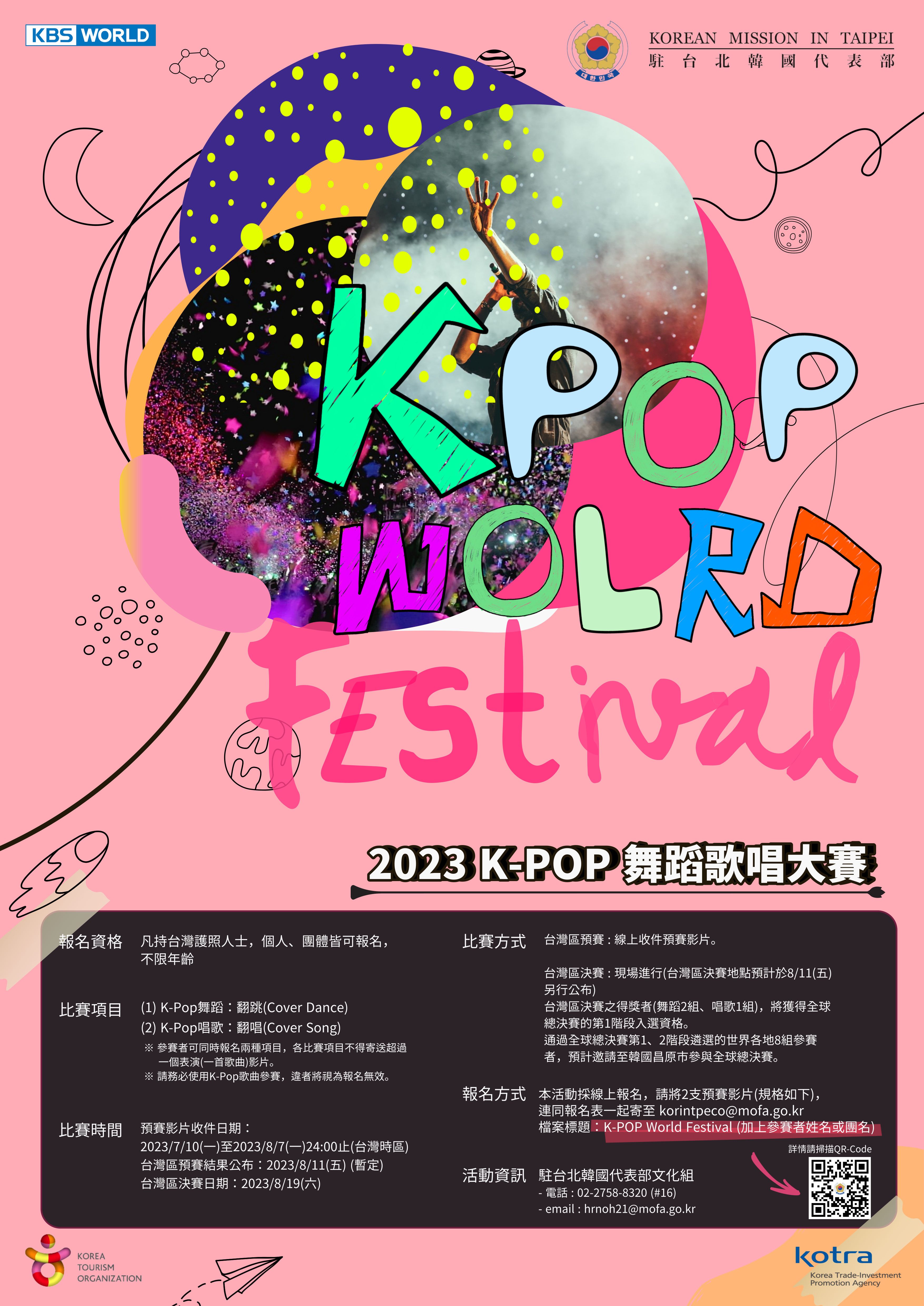駐臺北韓國代表部辦理「K-POP舞蹈歌唱大賽」活動,請踴躍參加!