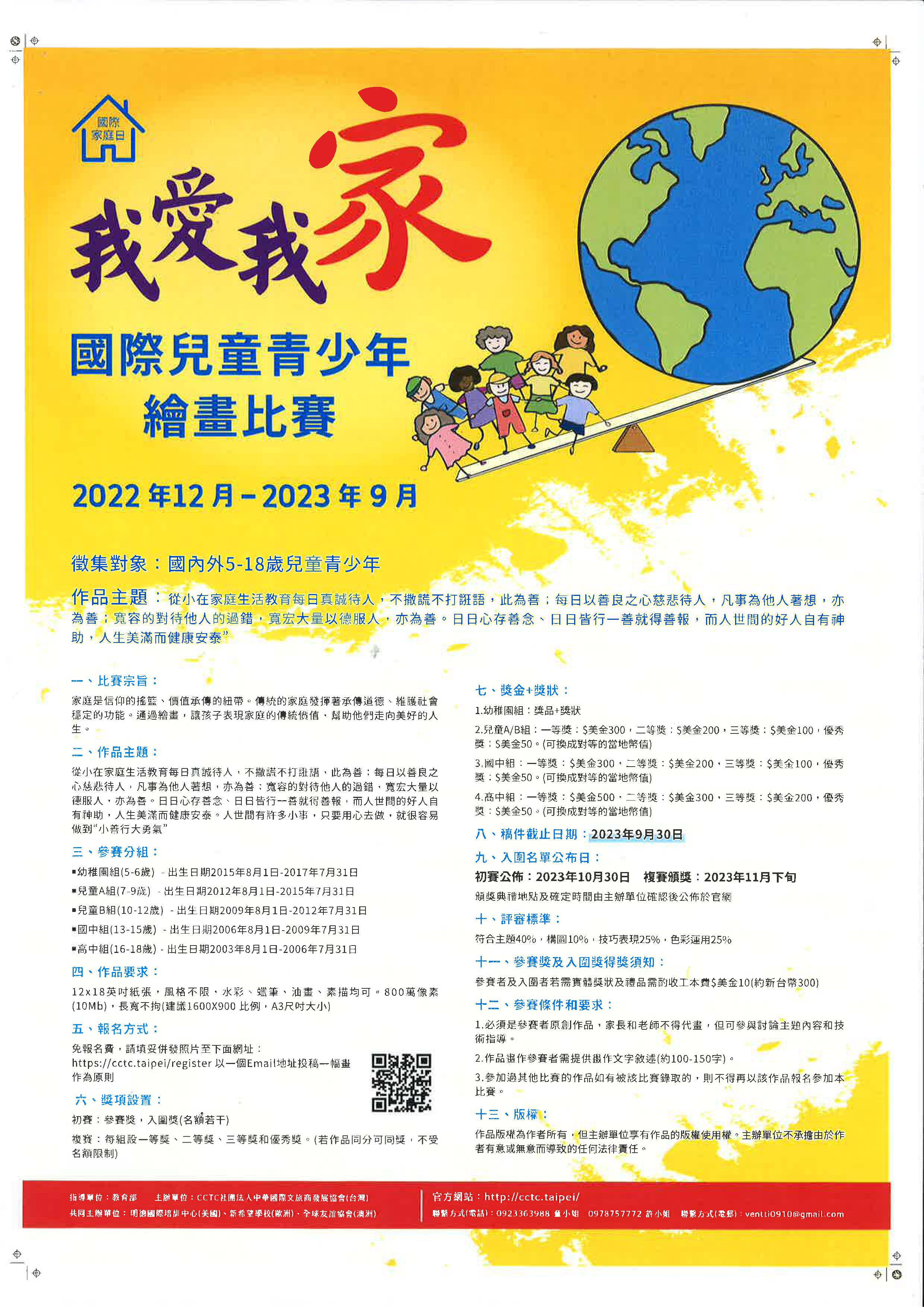 CTC社團法人中華國際文旅商發展協會辦理「2023世界兒童青少年繪畫比賽」修正後海報及比賽章程,詳如附件!