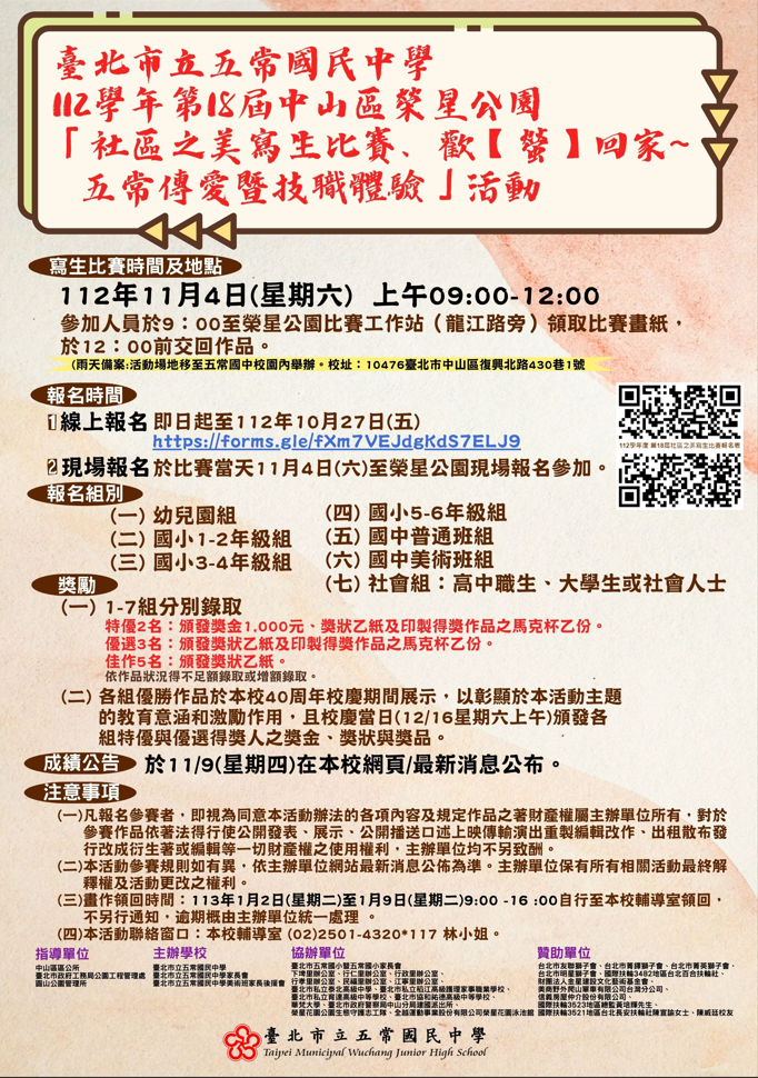三、線上報名:即日起至112年10月27日(五)止;亦可活動當 天現場報名。