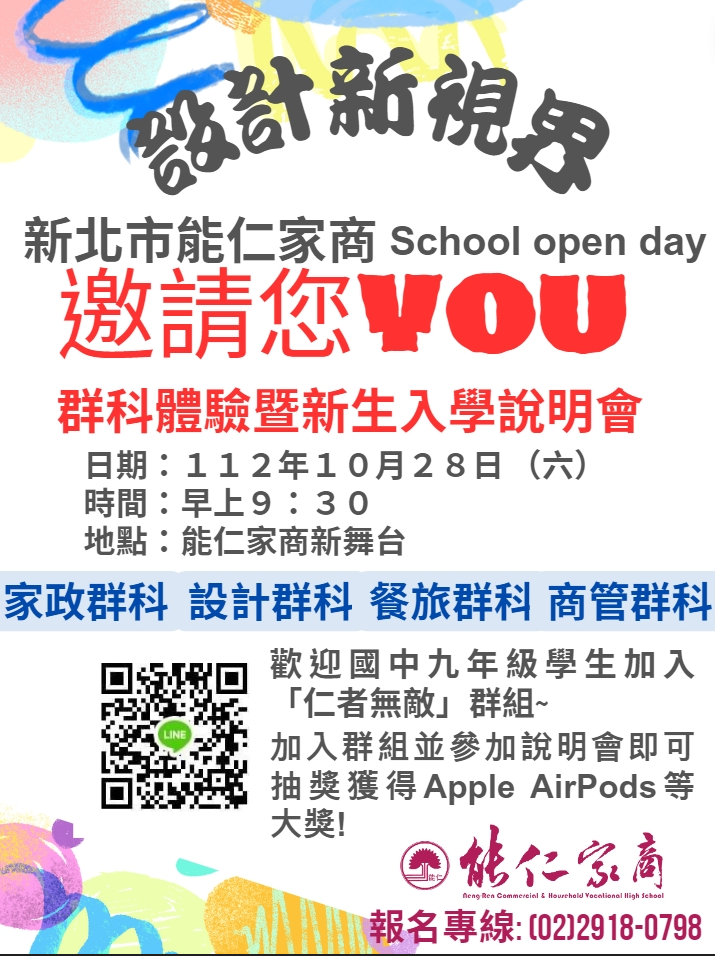 一、該校訂於112年10月28日(六)舉辦校園開放日(open day) 活動,並請踴躍報名。