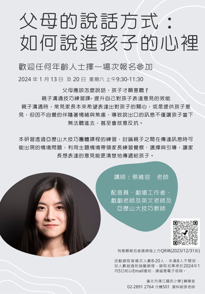 三、錄取名單將於113年1月5日(五)前公告於清江國小網站, 並同時以電子郵件通知錄取家長。