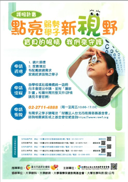 4.配合店家:大學眼鏡公司(站前門市、忠孝門市、內湖門市、士林門市、新南門市)。