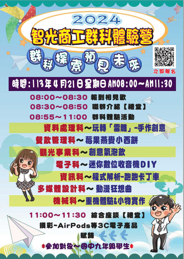 五、活動聯絡人:智光商工教務處招生組劉仲平組長,電話 (02)-2943-2491分機888。