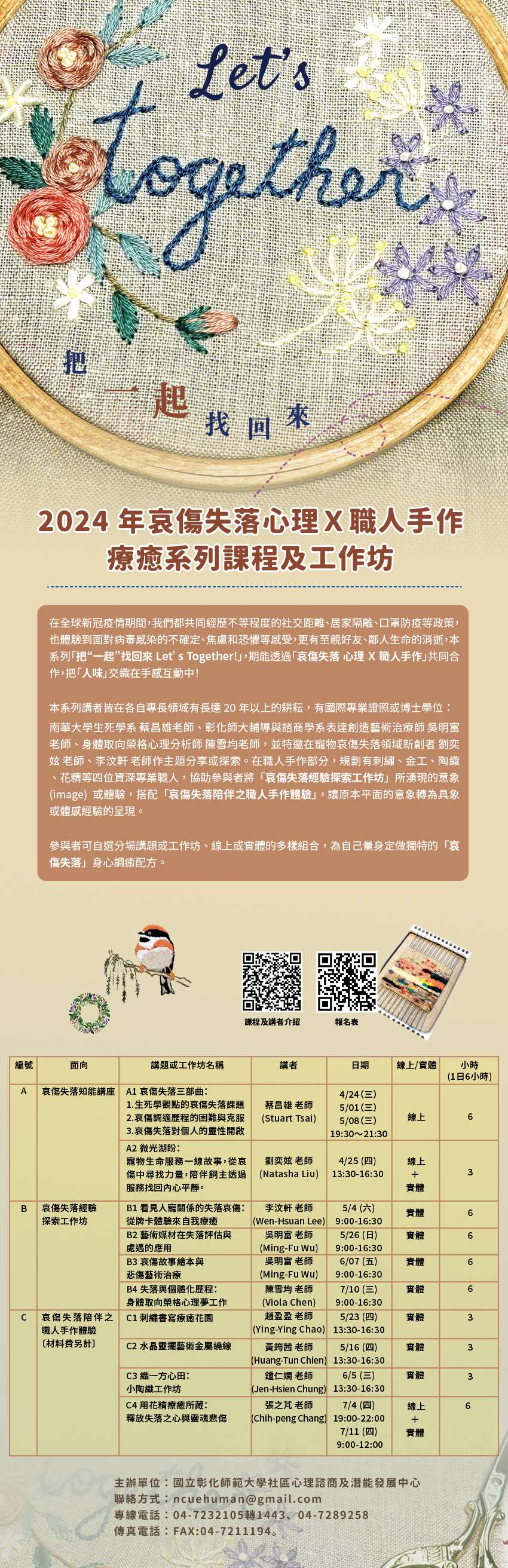 三、詳細資訊請連結至該校社區心理諮商及潛能發展中心網 頁:http://human1.ncue.edu.tw/bin/home.php或見附件簡章。