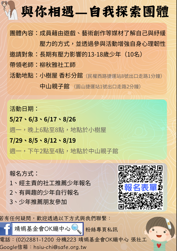 (二)113年7月29日、8月5日、8月12日及8月19日(週一)下 午2時至4時,地點於中山親子館。
