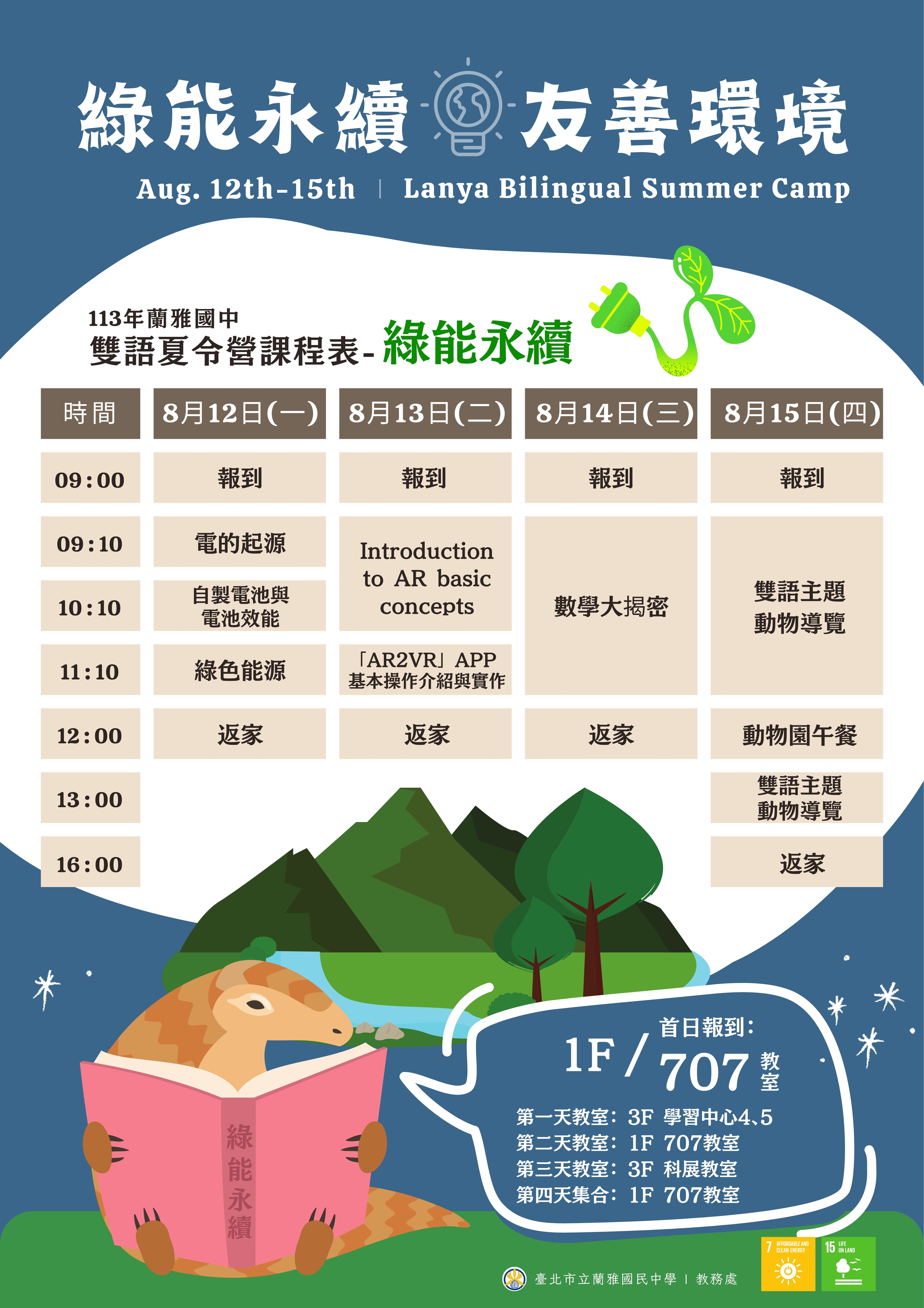 三、 8/12(一) 上午9:00前請於1樓707教室報到。