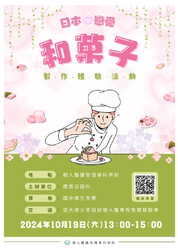 五、活動地點:高雄樹人醫護管理專科學校應用日語科(高雄市 路竹區環球路452號),從大湖火車站到樹人醫專有免費接 駁車。