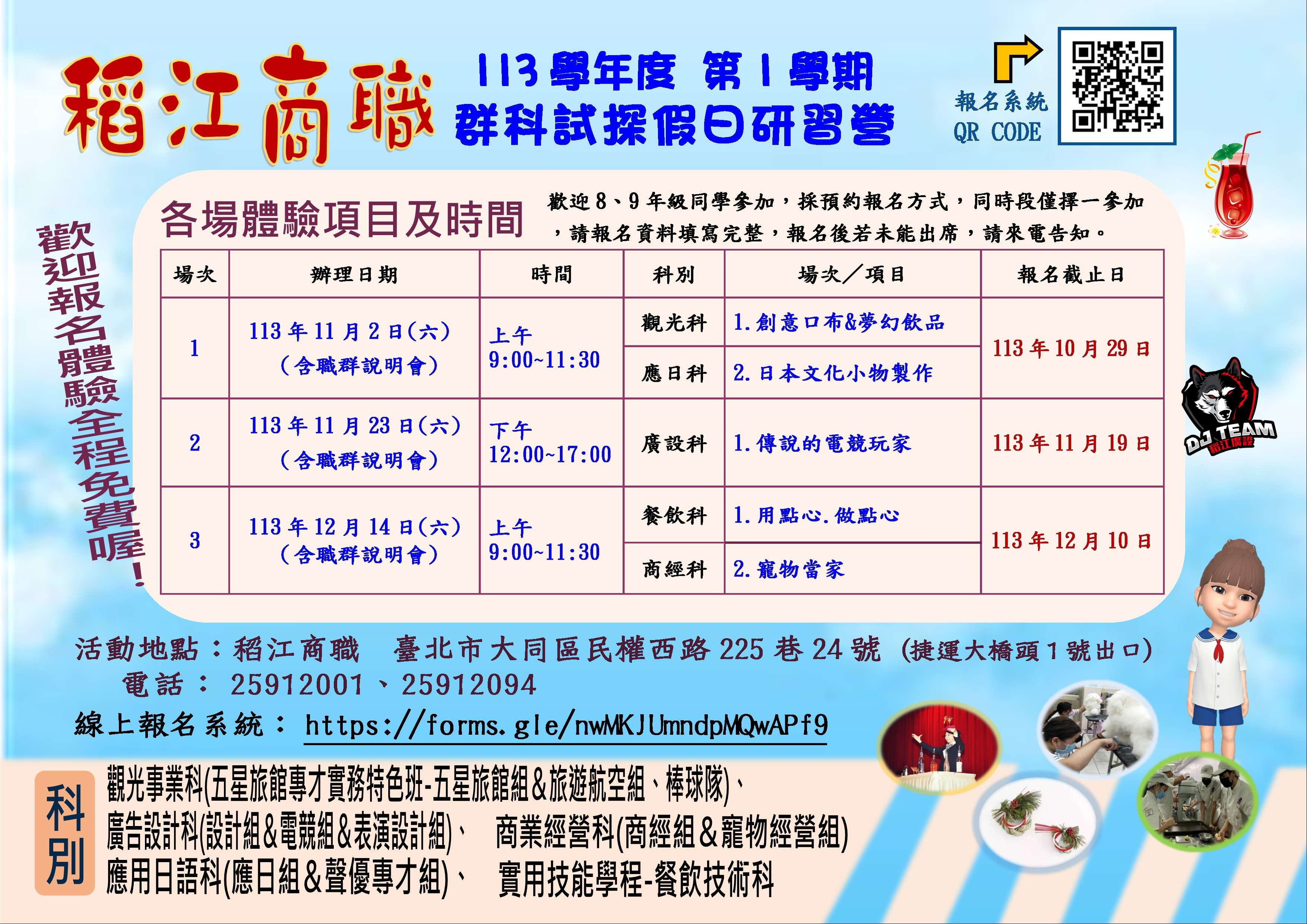 稻江高職辦理113學年度群科體 驗假日研習營活動