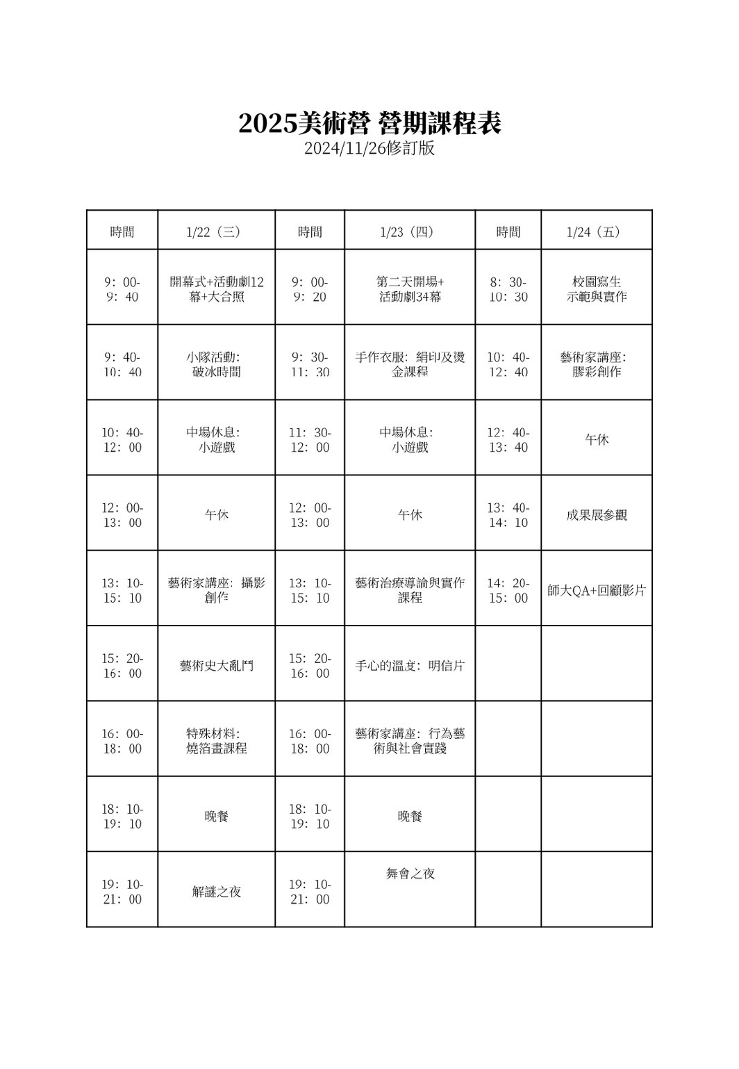 聯繫人: Email:蔡詠昕 art2025camp@gmail.com。