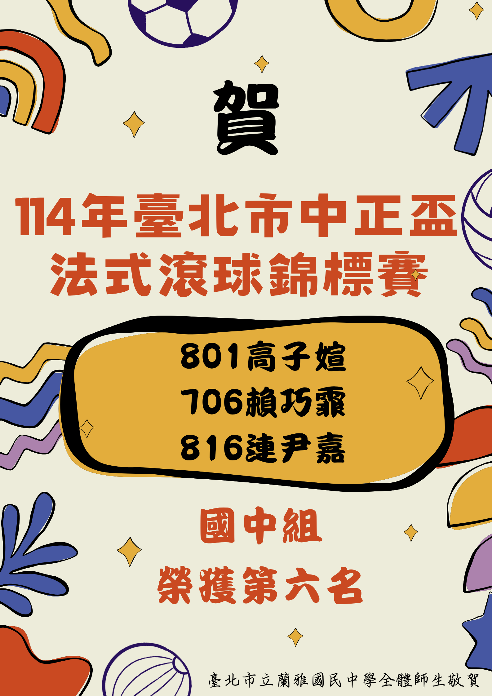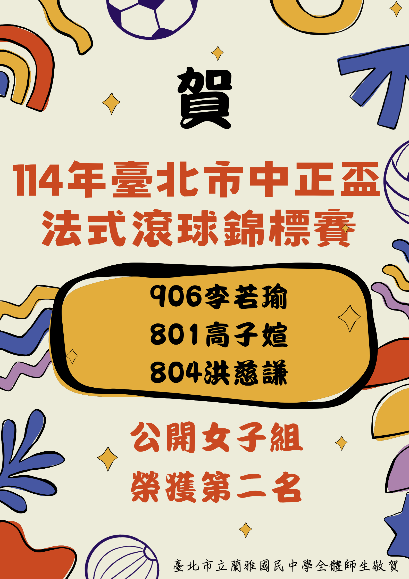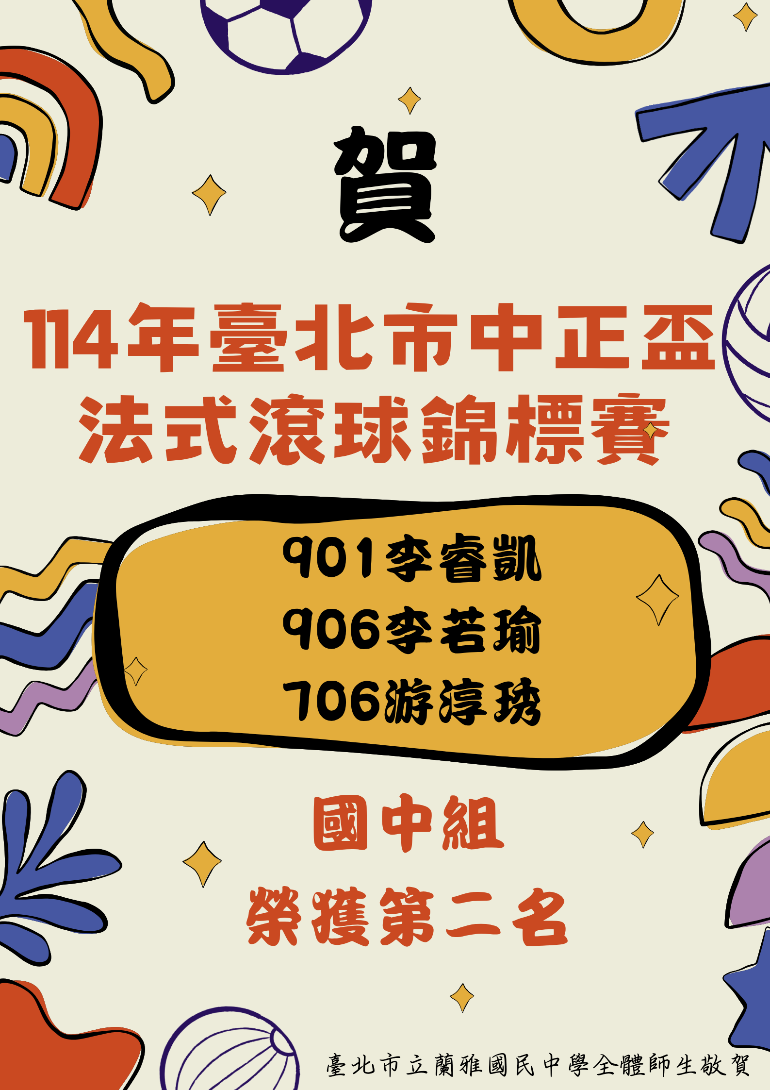 賀!本校學生參加【114年臺北市中正盃法式滾球錦標賽】表現優異!~感謝楊清安教練的指導~~