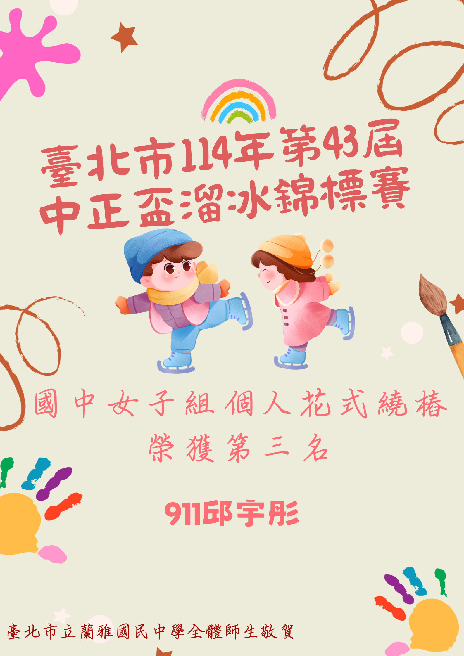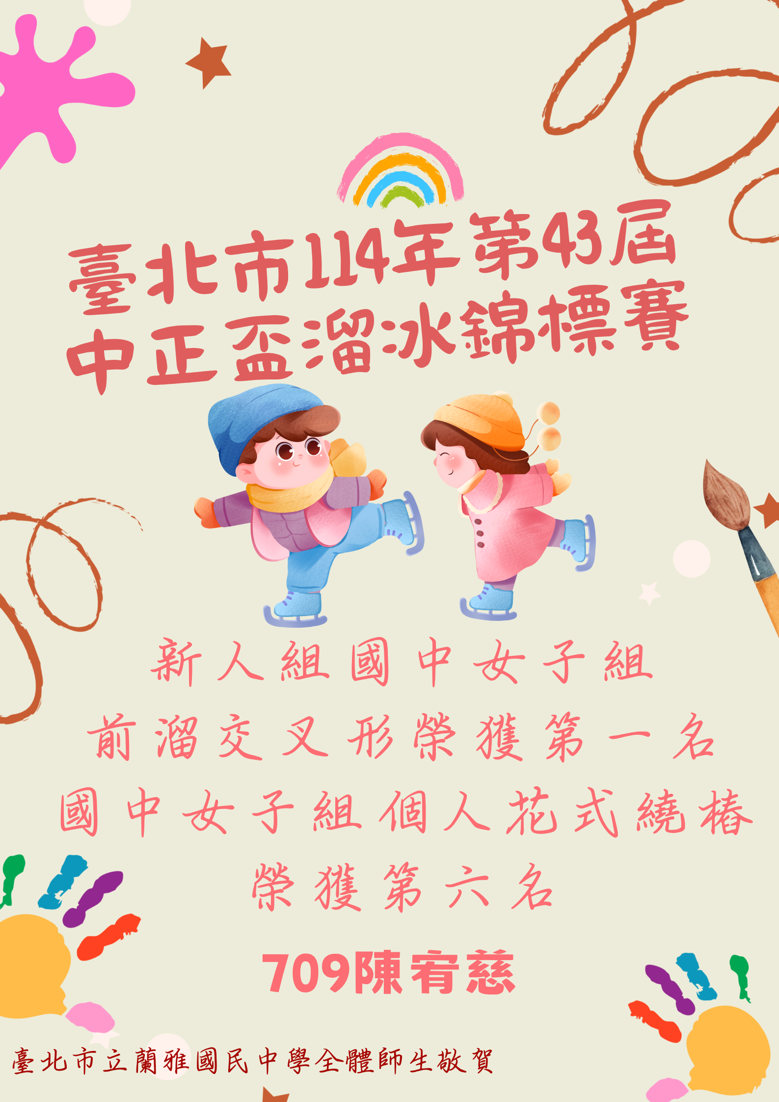 賀!本校學生參加【臺北市114年第43屆中正盃溜冰錦標賽】表現優異!~感謝李靜平老師、鄭夙君老師及徐兆逸老師的指導~~