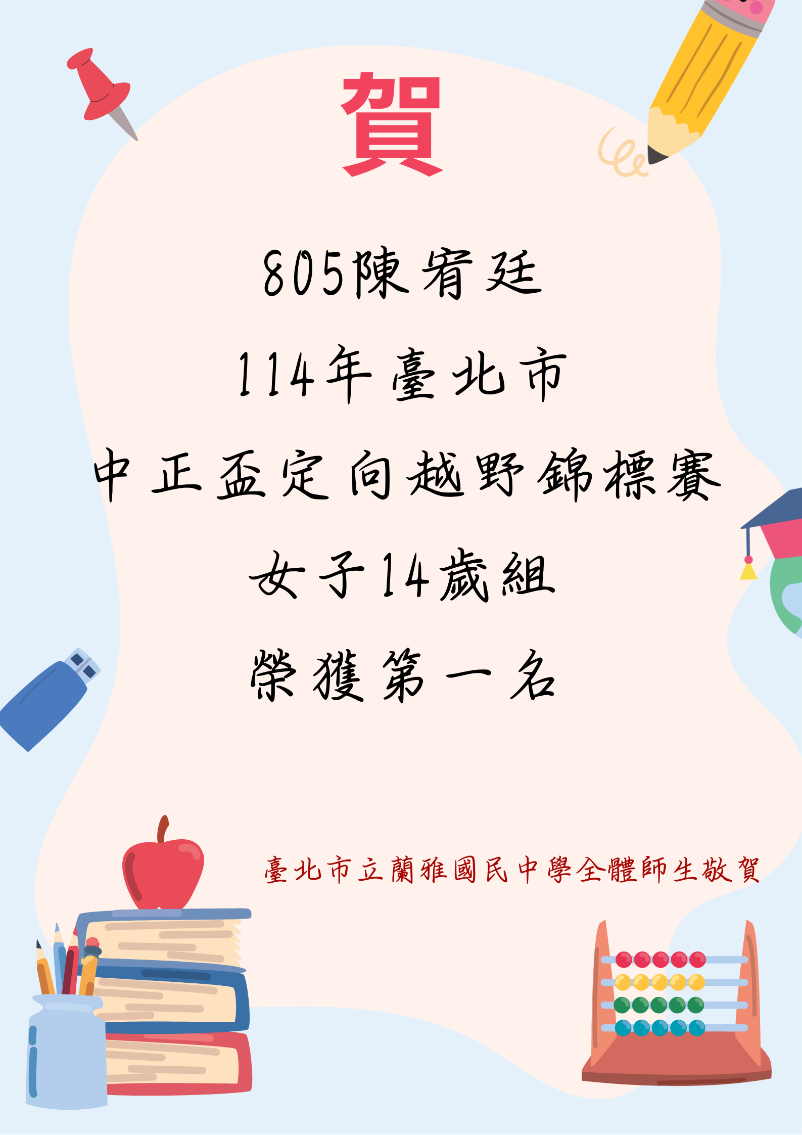 賀!本校學生805陳宥廷參加【114年臺北市中正盃定向越野錦標賽】表現優異!~感謝805李佳昇老師的指導~~