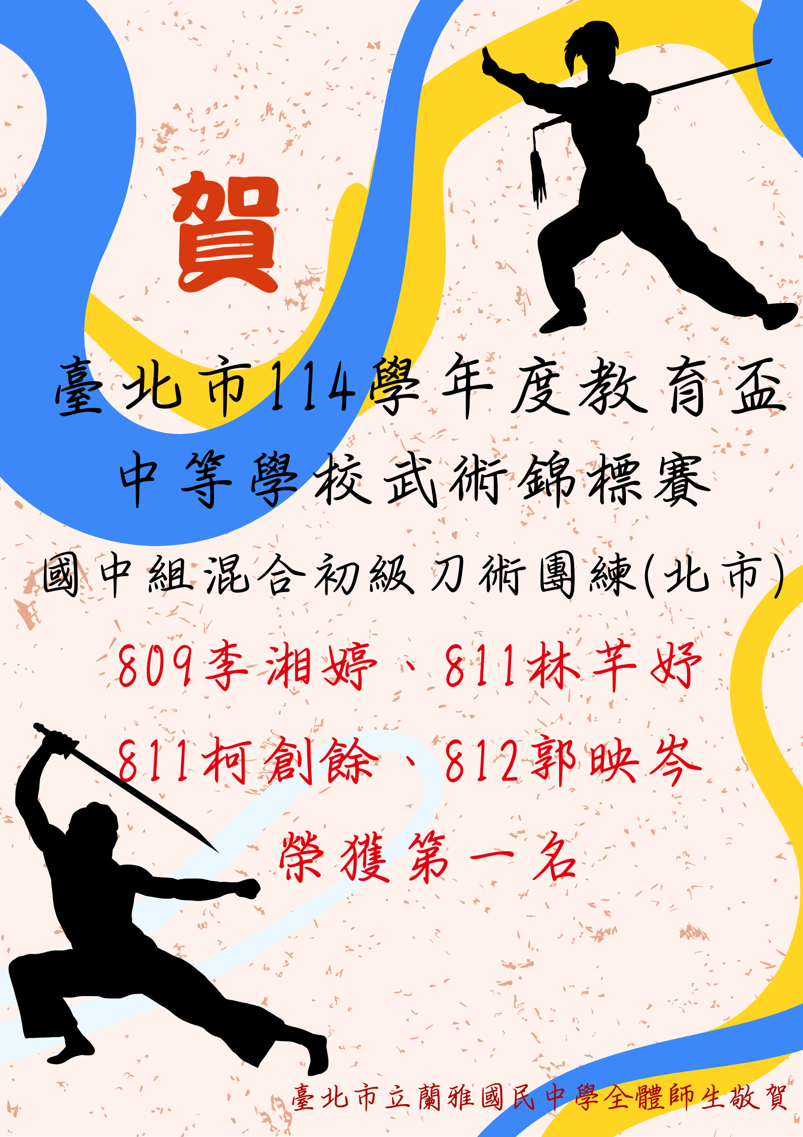 賀!本校學生參加【臺北市114學年度教育盃中等學校武術錦標賽】表現優異!~感謝賴文成老師的指導~~